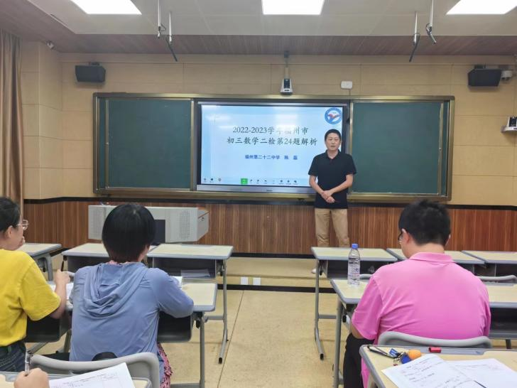 陈磊老师和董乐老师分别对2022-2023学年福州市初三数学二检第24题进行说题展示。