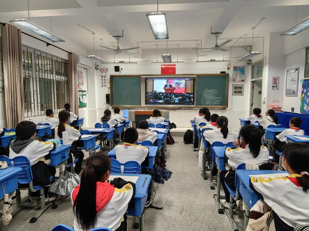 我校组织学生通过全国青少年普法网观看“宪法晨读”直播,共同参与宪法晨读。