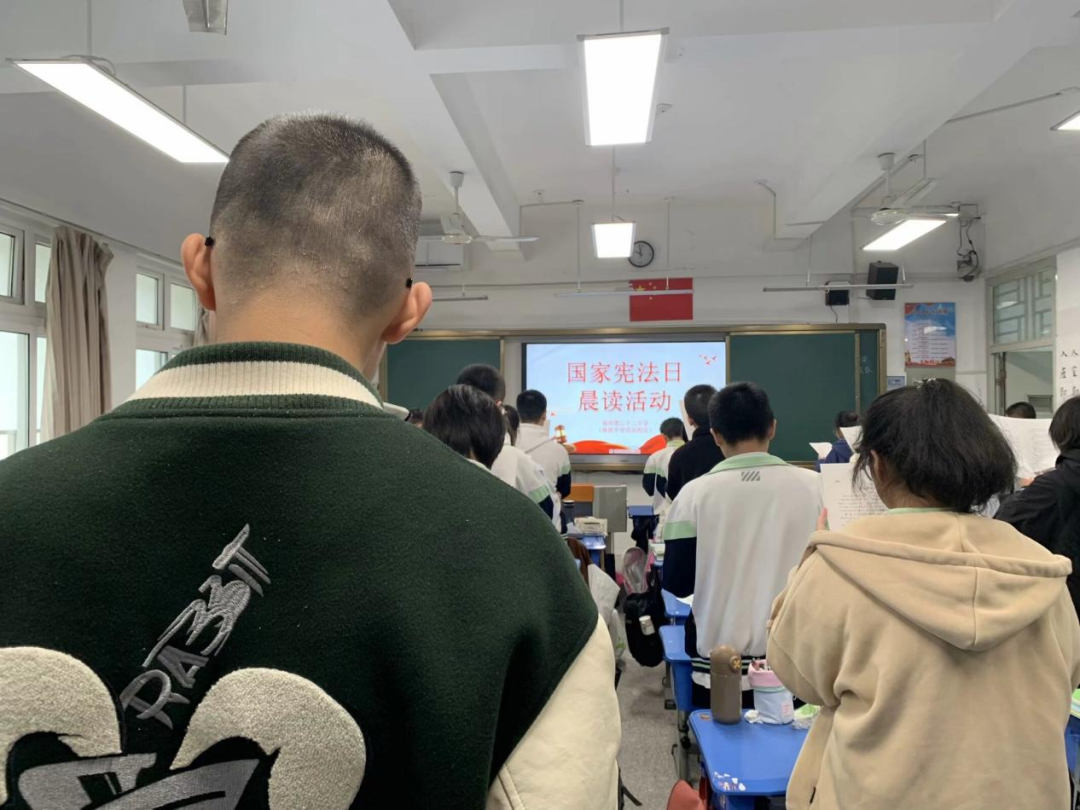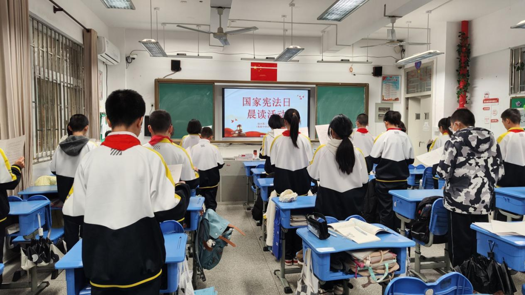 12月4日,我校在阶梯教室、班级内举行了国家宪法日晨读活动。学生们诵读宪法部分条例,学习宪法知识,树立起尊重宪法、宪法至上的思想意识。
