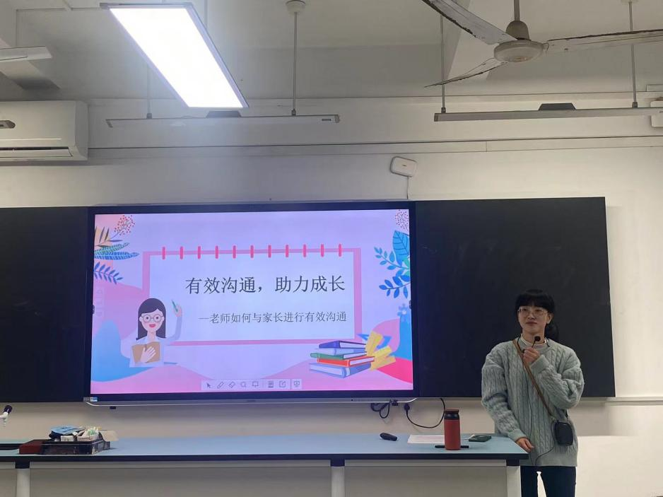 培训最后,阮玥老师通过案例分享的方式,跟老师们分享了如何利用“六多六少促交流”的原则、“三明治法则”增强家校沟通的有效性,为新教师提供切实有效的方法,共同发挥出育人合力。