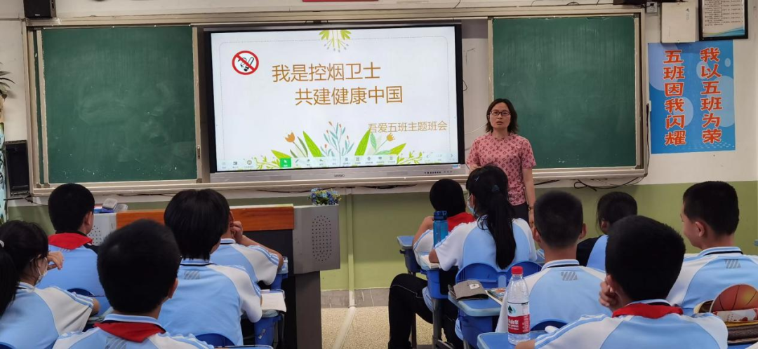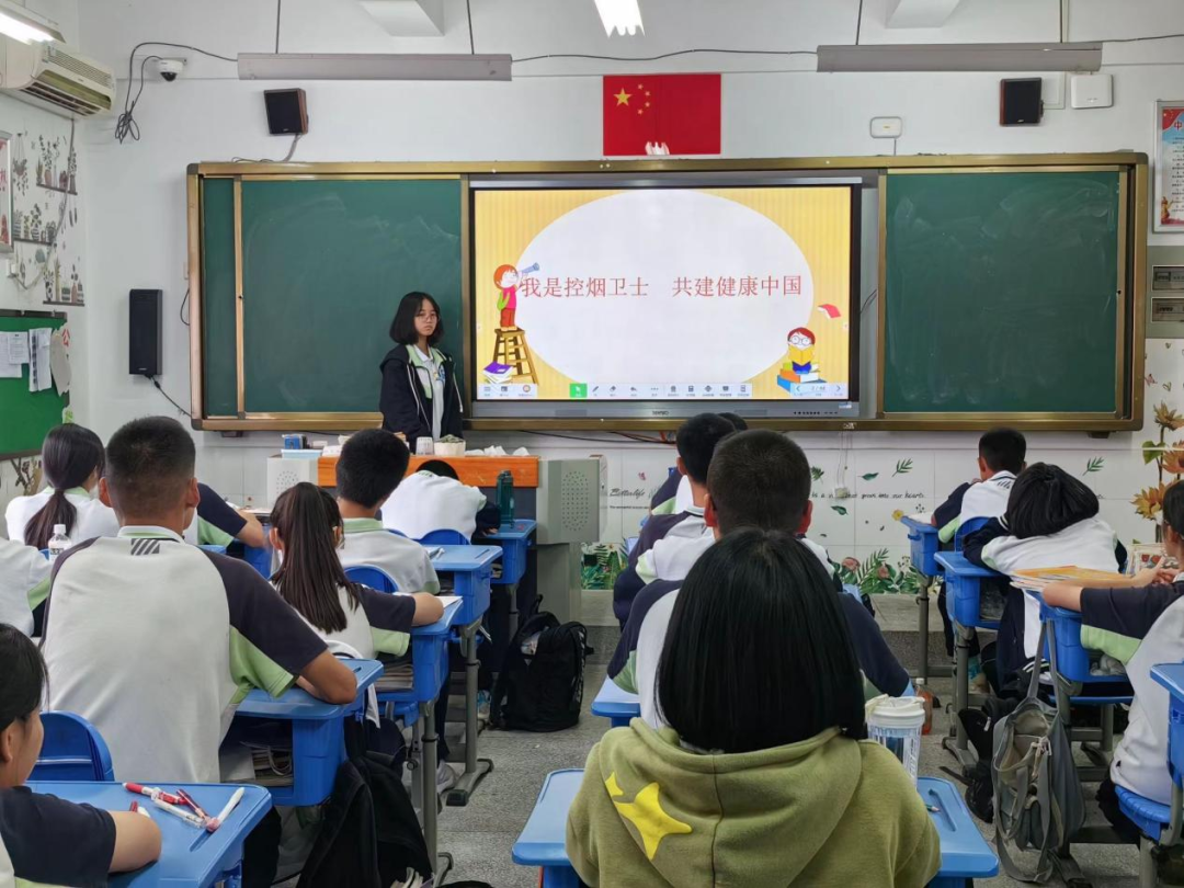 各班开展了以“无烟校园,你我共建”为主题的的班会课,班会课上,班主任老师通过PPT和视频,图文并茂地向同学们详细讲解了从香烟的主要成分、吸烟导致的疫病、二手烟、三手烟的危害等,让同学们充分了解到吸烟对身心健康的危害性,自觉抵制烟草的诱惑,坚决杜绝吸烟的念头和避免被动吸烟。