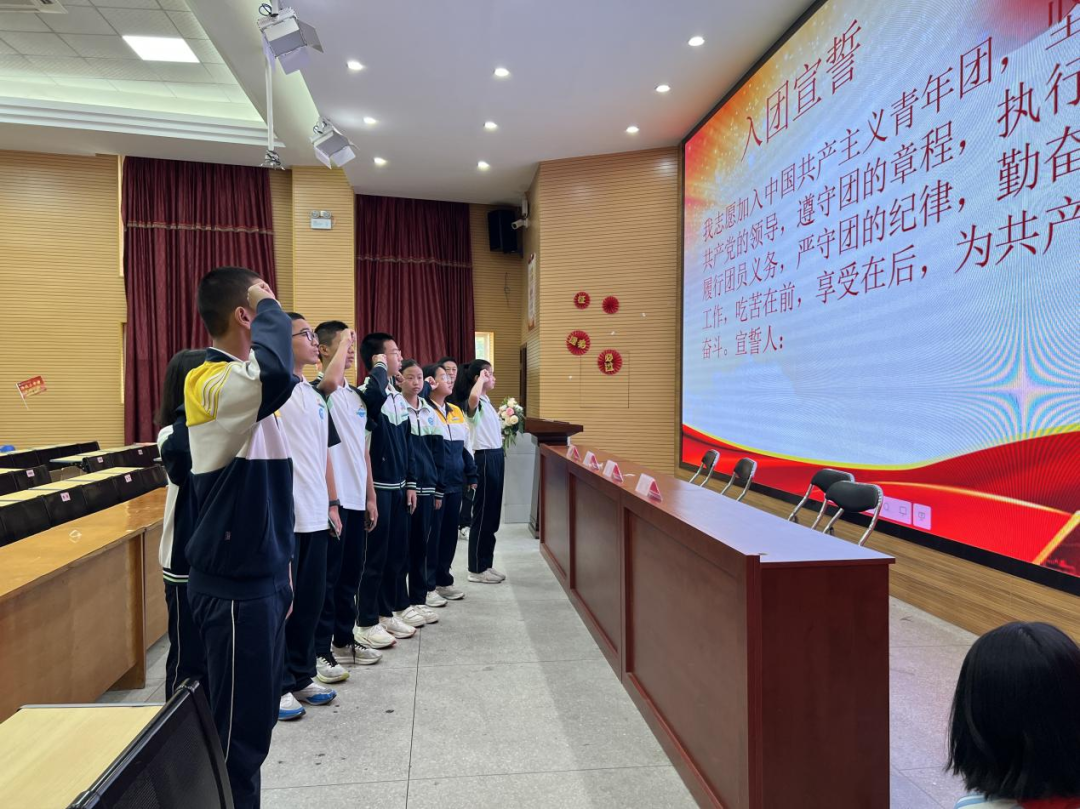 新团员的加入不仅壮大了校团组织的力量,也向团组织输入了新鲜的血液,注入了新的活力,更为党的伟大事业储备了优秀青年力量。希望全体新团员要牢记今天的青春誓言,不辜负父母、老师和国家的殷切期望,怀抱梦想脚踏实地,用青春的热血和激情谱写人生的绚丽篇章,在新征程上创造新的时代辉煌!