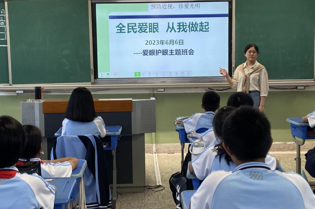各班也开展了以“全民爱眼,从我做起”为主题的的班会课,班主任们通过介绍爱眼日的由来、什么是近视、如何预防近视等方面引导学生正确用眼。