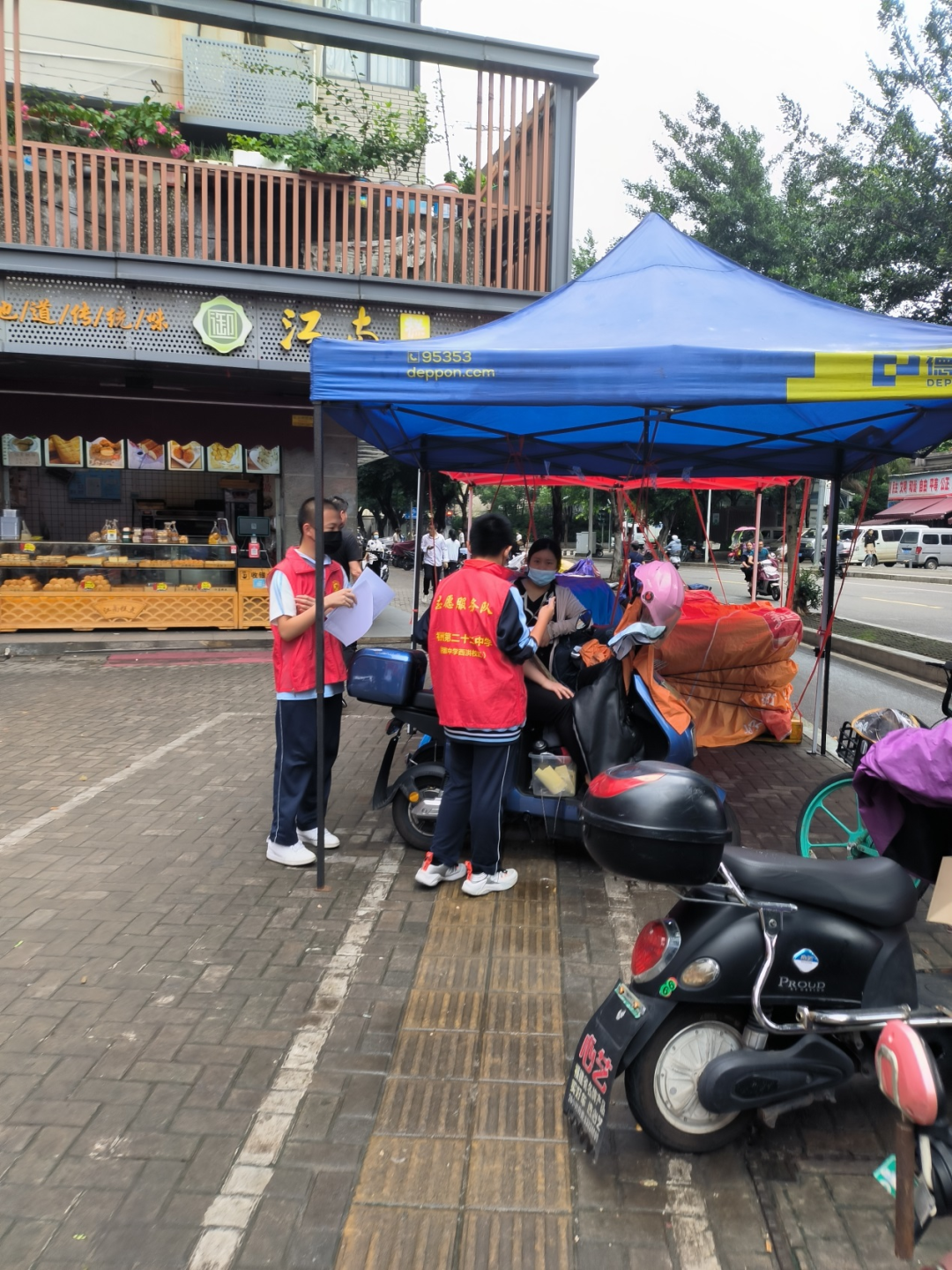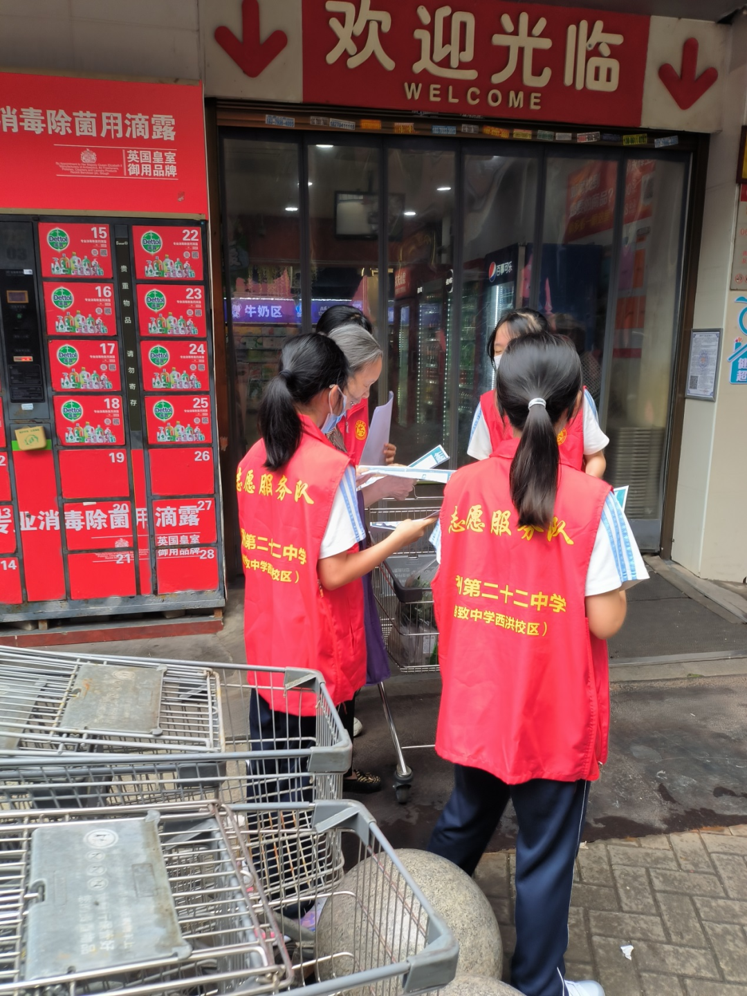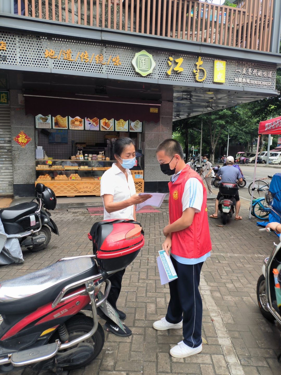 活动中,学生志愿者们身穿红色马甲,给市民们分发宣传单,并给他们分享了一些眼睛保健小知识。