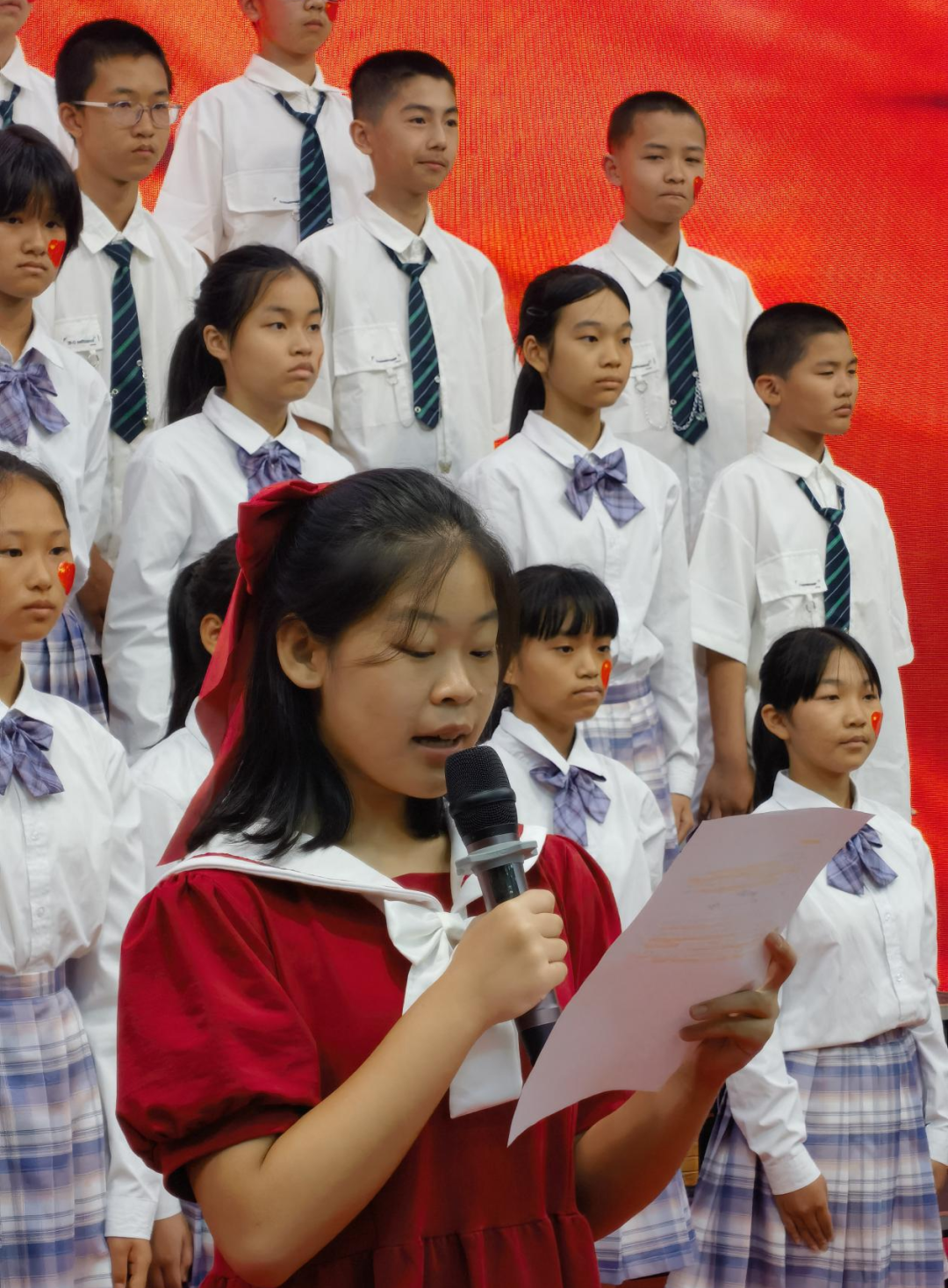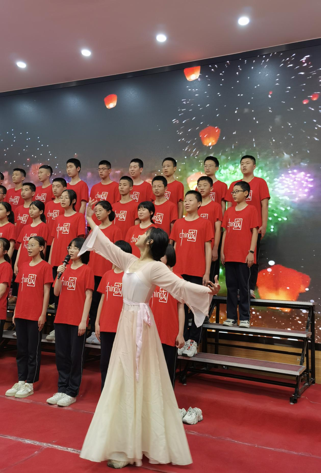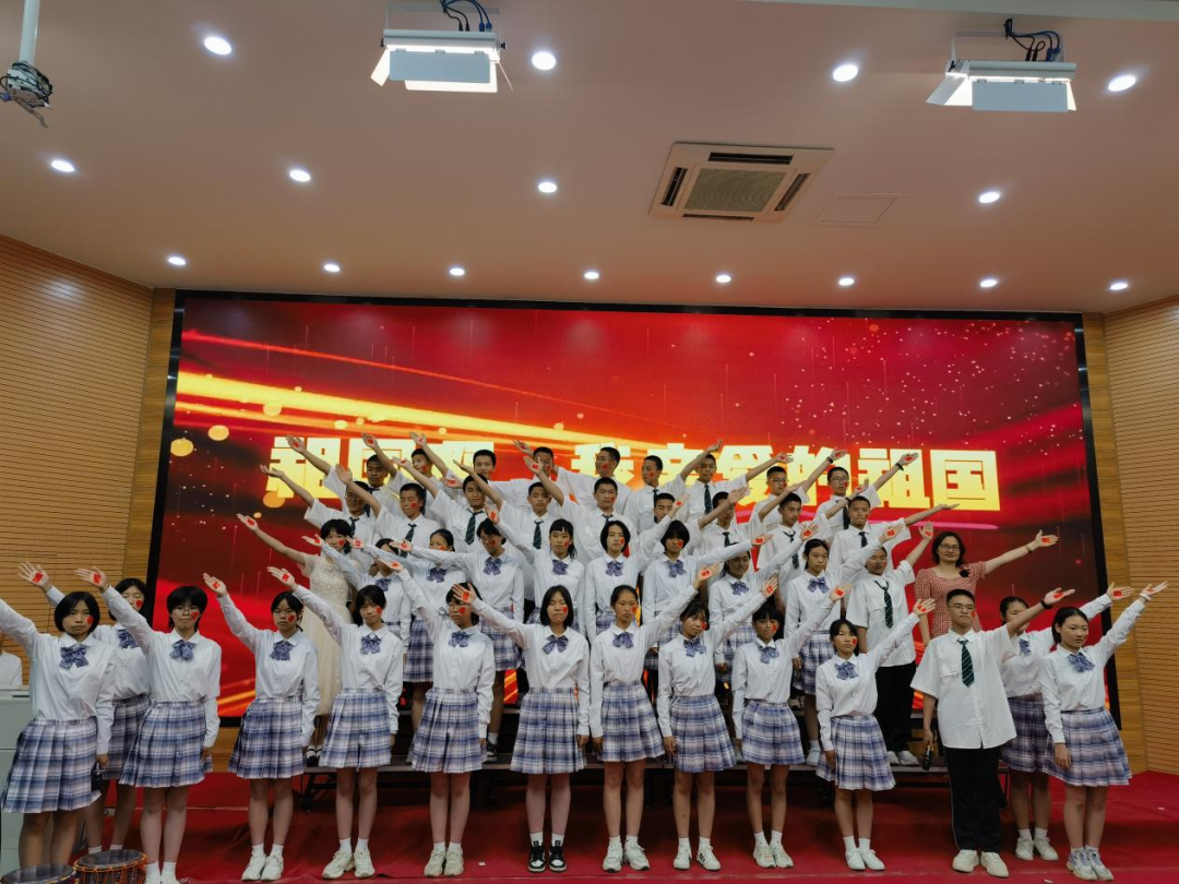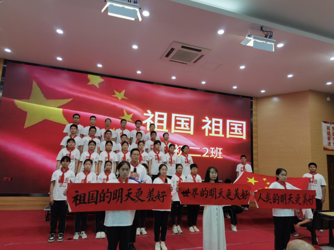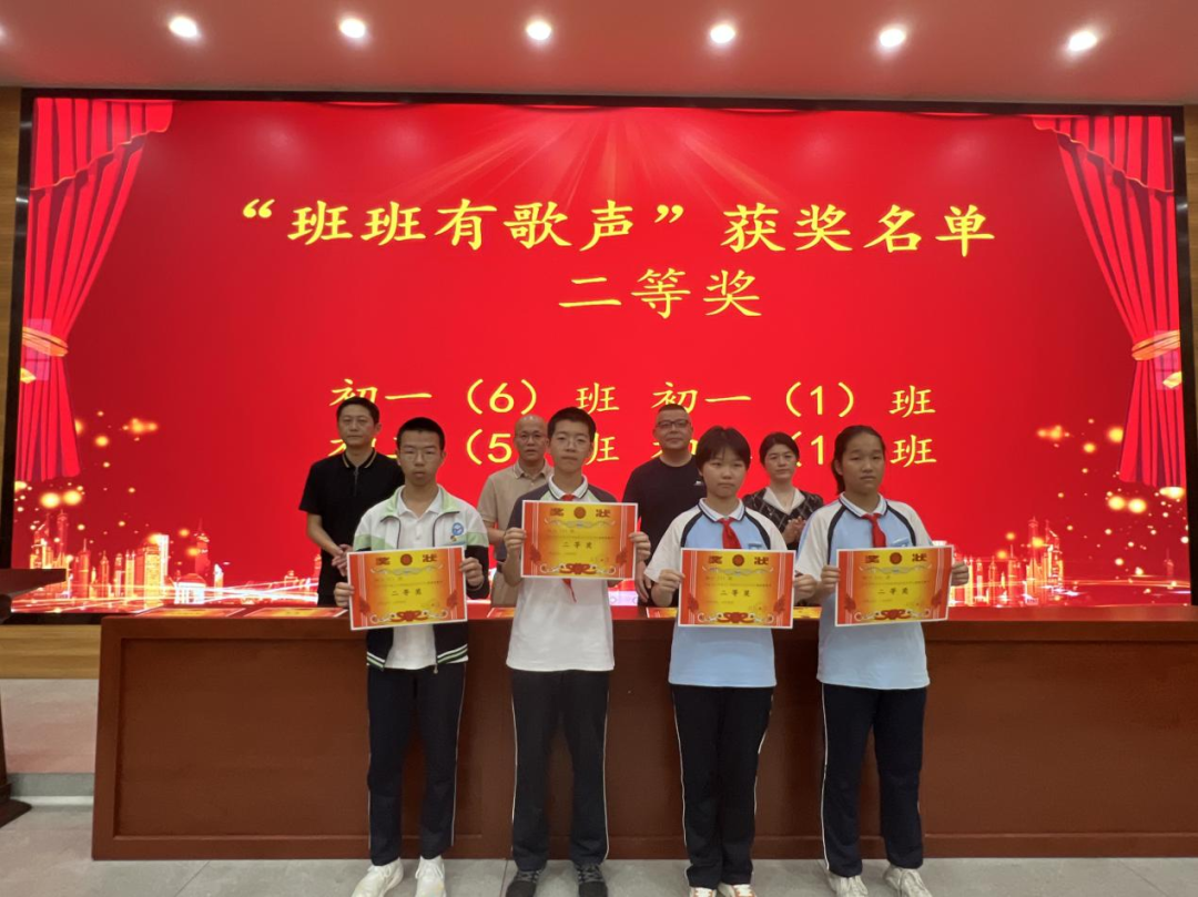 各班级在班主任的指导带领下,结合各班的特色,演绎出不同的风采。参赛班级依次登台演唱用整齐划一的队形、激昂嘹亮的歌声和诵读声、真挚饱满的情感在舞台上尽情展示自我的风采和青少年的活力,师生们飞扬的歌声吟唱难忘的岁月,绽放时代的华章。