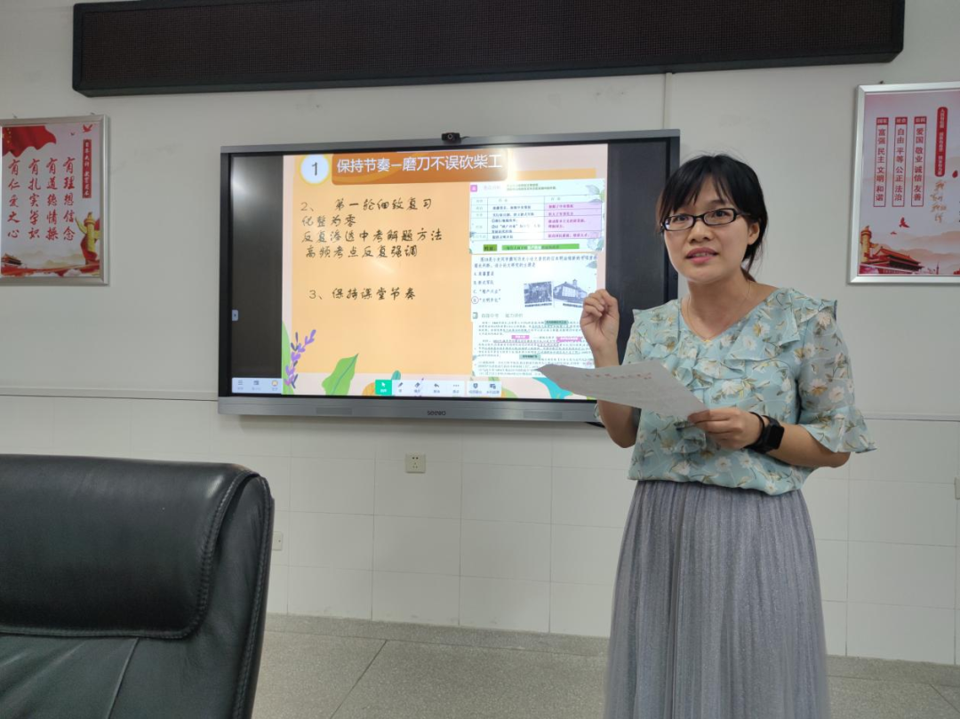 道法组刘俊杰老师提出,要坚持“不抛弃不放弃”原则,科学分析,精准施策。优等生要稳心态,给自信;中等生要抓基础,固成果;学困生要背重点,保均分。最后冲刺阶段,将继续抓好课堂这一主战场,夯实基础,构建知识网络,着力培养学生思维能力。