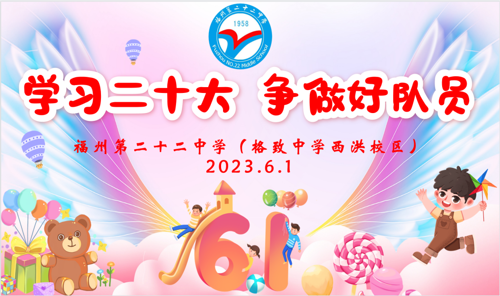 在“六一”国际儿童节来临之际,为深入贯彻落实党的二十大精神和习近平总书记关于做好少先队工作的重要指示,聚焦少年儿童政治启蒙和价值观塑造的主责主业,激发少先队员的光荣感、自豪感和归属感,点点taptap官网(格致中学西洪校区)开展了“学习二十大,争做好队员”庆六一儿童节系列活动。