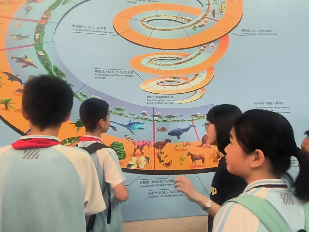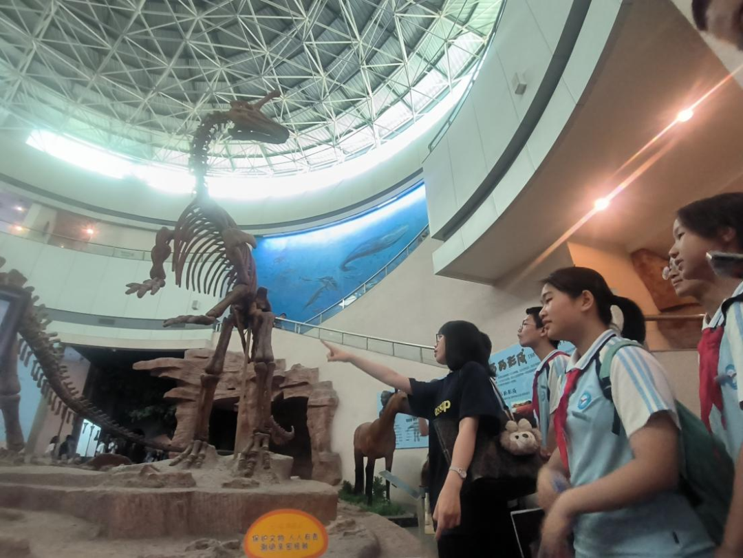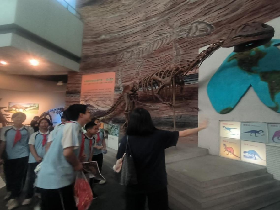 在设计图的引导下,同学们来到了第一站自然科学馆。这里藏品涵盖海陆空不同时期的生物标本和模型,最多的也最吸引眼球的当属各种体型的恐龙模型,俨然成为恐龙的乐园。
