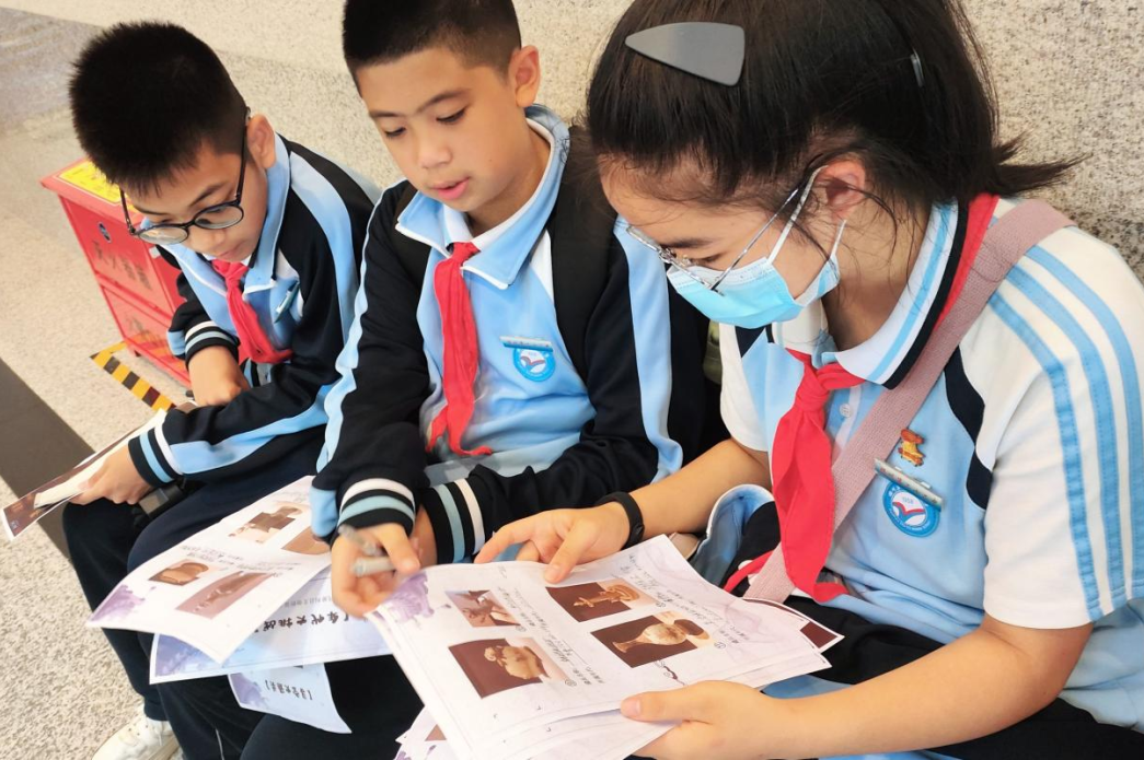 各小队在展厅里积极探索,寻找研学挑战清单上的相关展品,小组合作,交流与探索,共同完成研学任务。