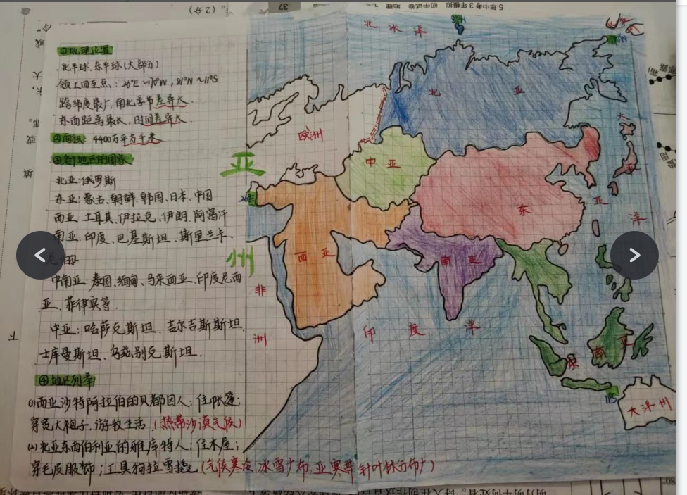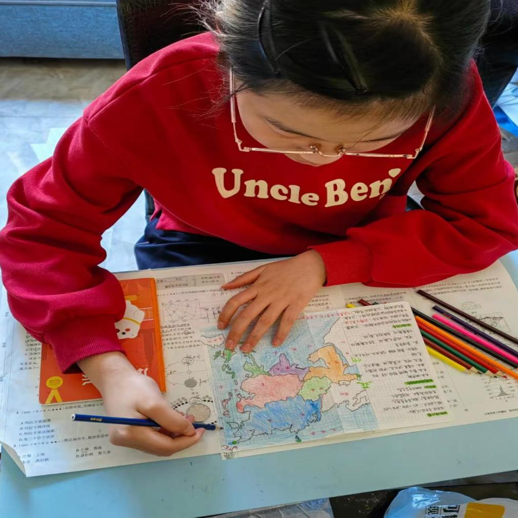 在参观结束后,同学们学以致用,完成了“绘制你感兴趣的地球主题手绘地图”的综合实践作业。
