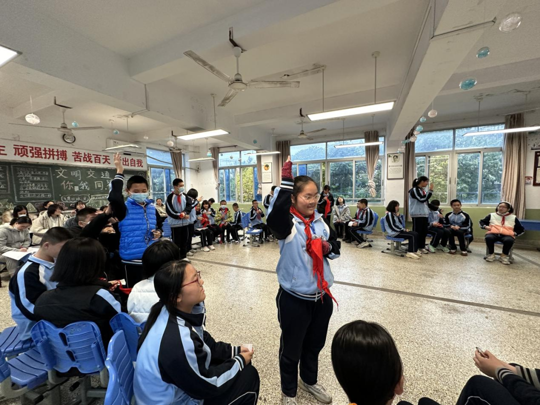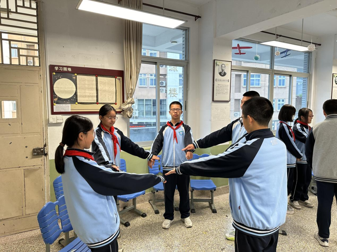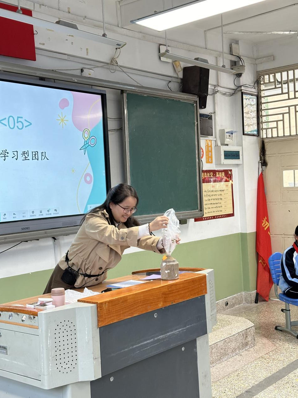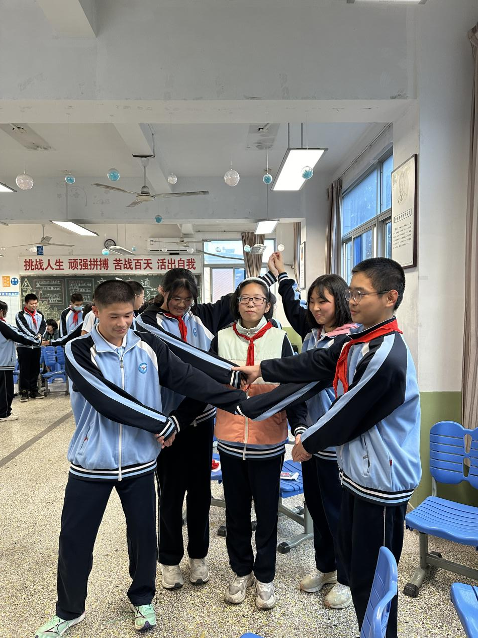 初二(4)班班主任刘美英老师以“聚是一团火,散是满天星”为主题上了一堂生动精彩的德育公开课。刘美英老师通过走进团队、体验团队、感悟团队、总结四个环节开展,增强了班级凝聚力,班级成员之间相互关心,相互鼓励,齐心协力为班级做贡献;同时在班级成员间形成积极向上、团结奋进的氛围。