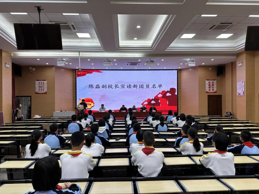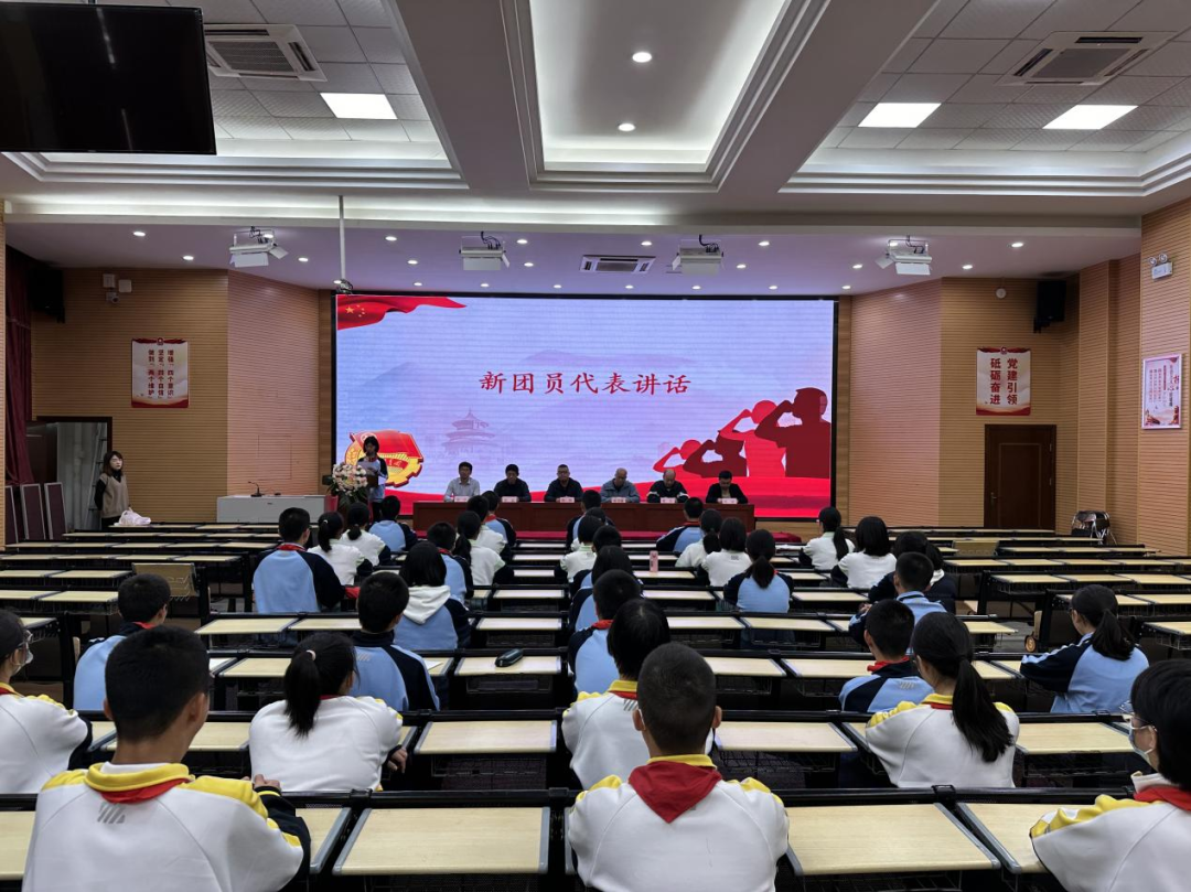 陈琛书记为入团仪式进行致辞。青年强,则国强。团是党的先锋队,是党的后备力量,加入中国共产主义青年团是人生重要的里程碑,也是成长道路上的一个新起点。希望同学们从一点一滴做起,牢记使命,勇于担当,让青春在奋力拼搏中绽放出绚丽之花。