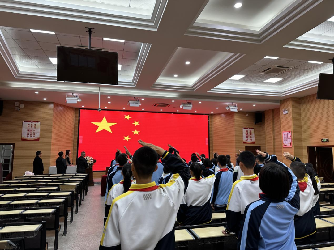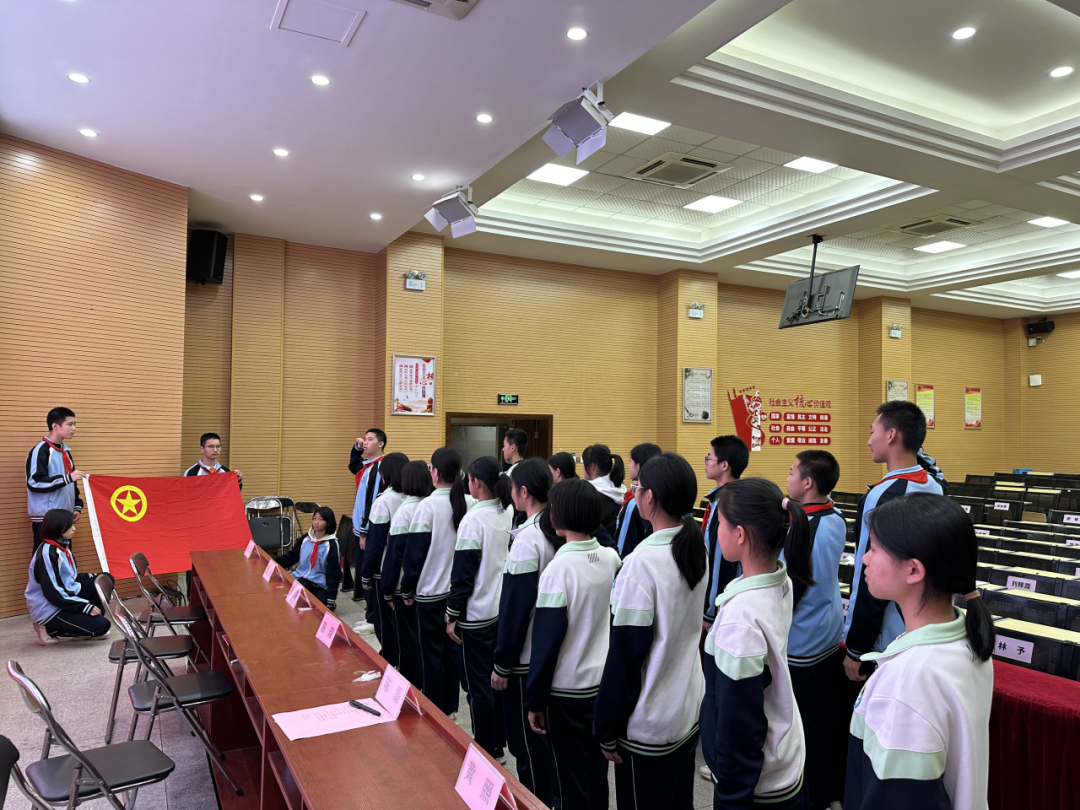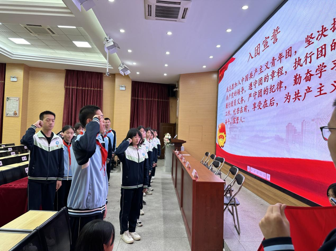 在初二(1)班郑铭俊同学的领誓下,新团员们面向团旗,高举右手,庄严宣誓,朝气蓬勃的面庞,掷地有声的誓言,彰显着新时代青年奋发向上的精神面貌。