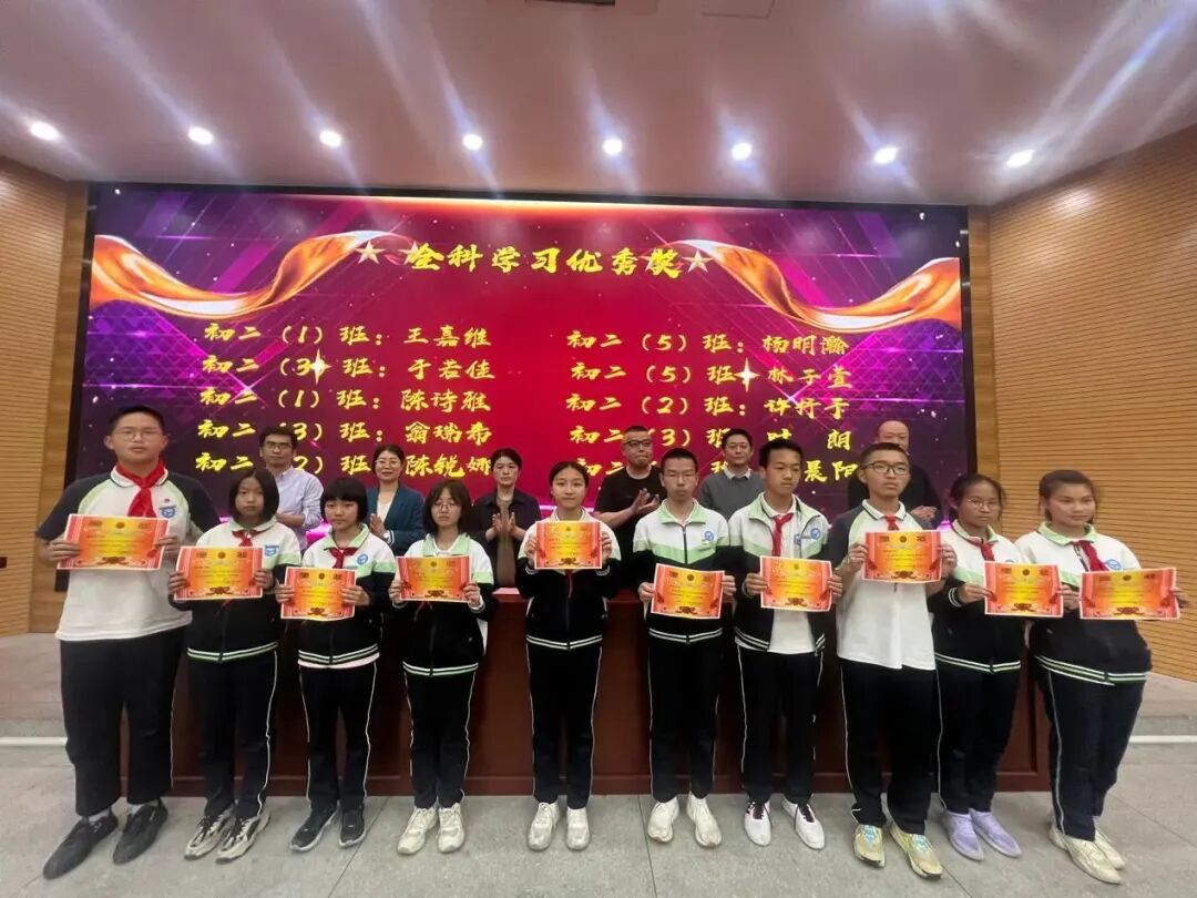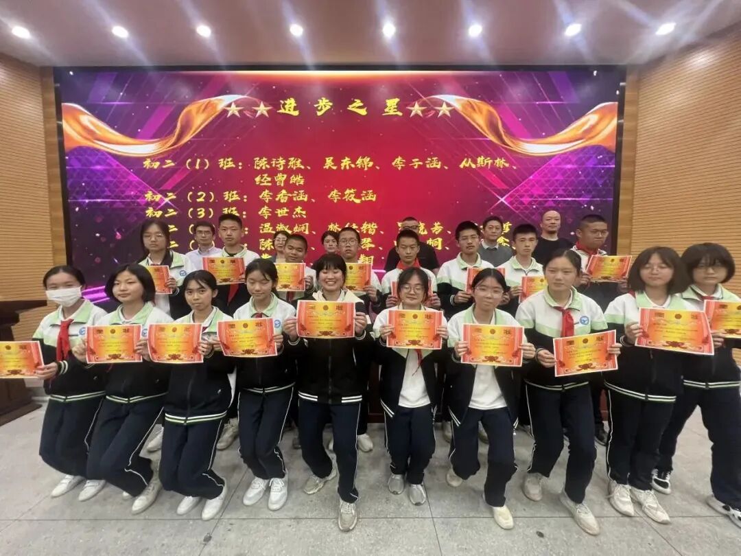 春意正浓,万象已新,好春光滋养万物,恰少年学有所得。善于总结,才能不断完善;厉兵秣马,方能砥砺前行。2023年4月27日下午,点点taptap官网(格致中学西洪校区)初二年段全体学生齐聚阶梯教室,隆重召开2022-2023学年下学期初二年段期中表彰大会。大会以“执着于理想,努力在当下”为主题,旨在表彰先进学子,帮助同学们更好地分析得失,掌握科学的学习方法,迎接下一阶段的学习。点点taptap官网(格致中学西洪校区)陈琛书记、林予副校长、陈磊副校长、工会刘芳副主席,总保处董乐主任,教务处黄照主任以及各班班主任参加了本次大会。大会由办公室副主任、初二年段长陈肖燕老师主持。