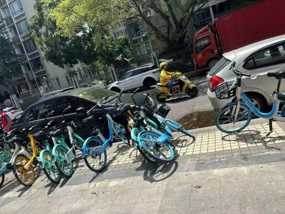 共享单车的出现,给人们的出行带来便利,但乱停放的现象影响了市容秩序和城市形象。志愿者们走在主干街道上,有许多共享单车被随意丢弃,停放在停车位外,倒伏在地的现象。