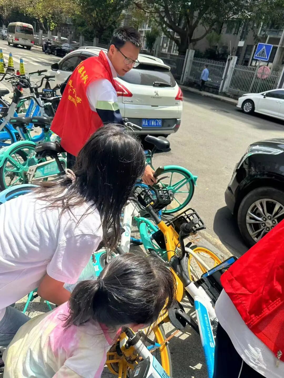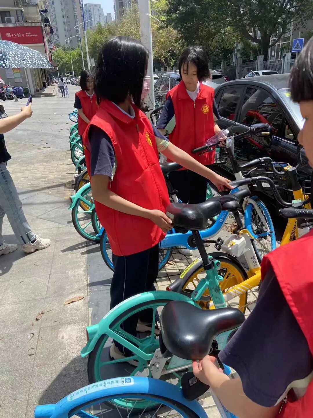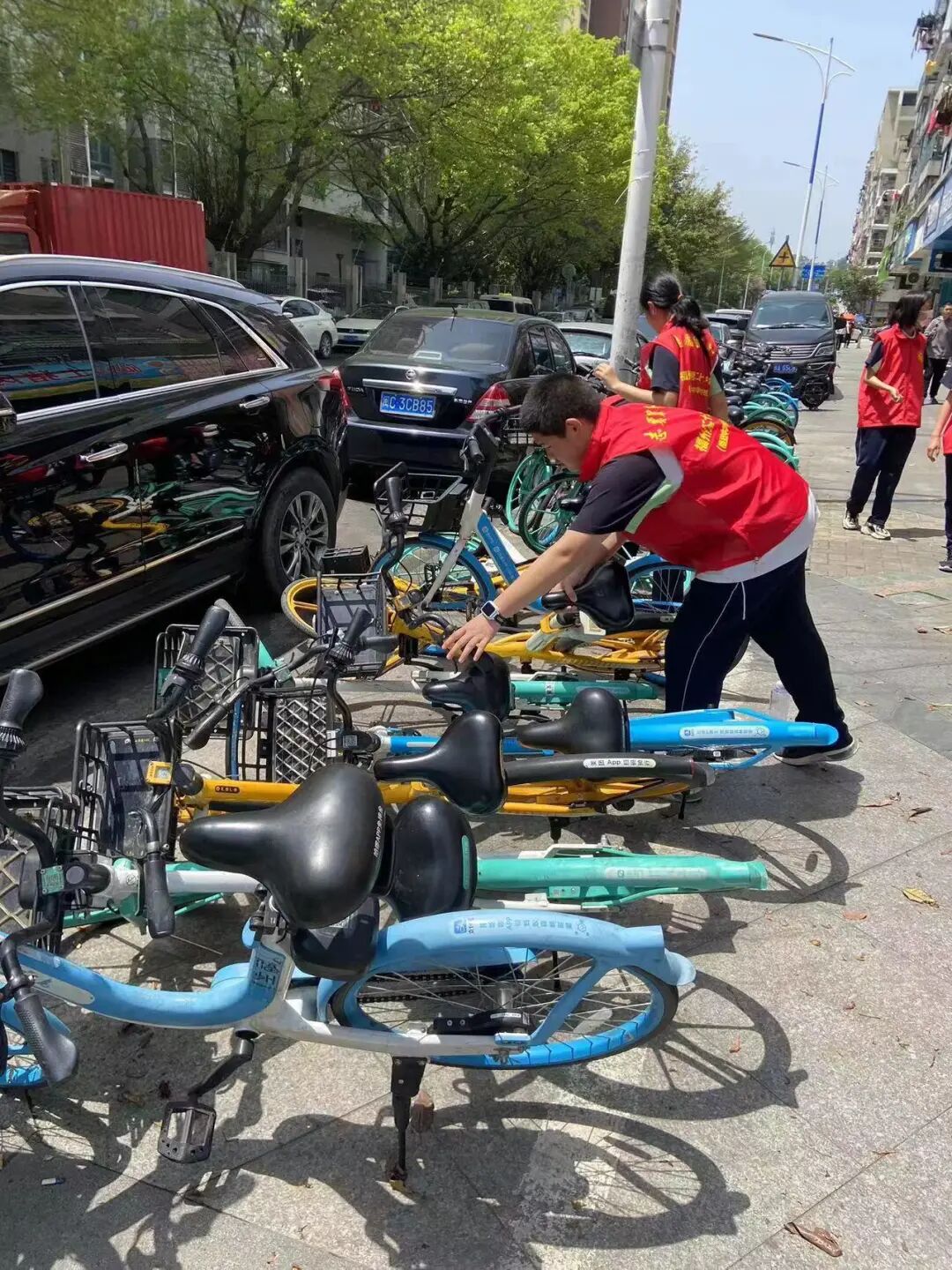 2023年4月5日,国光社区组织志愿者开展“整治共享单车,让文明“归位”活动,点点taptap官网初二(1)班学生志愿者也参与其中,为居民群众营造一个干净整洁的出行环境出一份力。