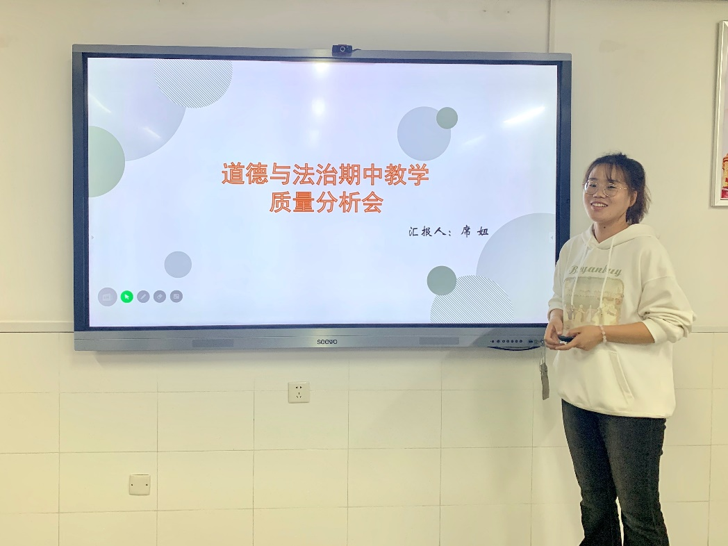 道法学科席妞老师提出本次考试难度系数增大,教学过程中要有意识地提高学生做难题的能力;针对复习时间较短的问题,要在新课讲授中穿插复习;引导学生认识到学习内容转变较大的现状,引起学生心理上的重视,加强监督管理,借用一定的奖罚机制来促进学生的理解性、技巧性背诵。