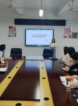 接下来各学科的老师们围绕命题特点、试卷难度、学生答题情况、存在问题及改进措施进行了细致的介绍。语文学科赵雪老师通过柱状图、表格等形式分析了本次语文试卷考试情况,接着王芳老师给出了行之有效的学习建议。她提出初中语文学科课前重视预习、课堂落实到位、课后巩固三个方面提高学习效率。数学郑治欢老师分享了她考前复习方法并认真指出了数学学科存在的问题。英语陈心舟老师针对英语学科存在的问题一一给予了指导方法。她强调要想让学生学习好,要让他爱上这门学科,而爱上这门学科首先是爱这个老师。所谓亲其师,信其道。我们要做一个让学生喜爱的老师,做一个让家长信任的老师。生物杨丽华老师强调课堂上要吸引学生的兴趣,可以通过视频、动画等提高学生兴趣,同时也有效解决和突破难题。地理杜雨欣老师说明这次考试进步的重要原因是因为考前做了两份练习并认真评讲,要求学生跟着老师做好笔记,并明确告诉学生要背什么,考什么。历史刘美英老师强调课堂上要重视学生的读、写、说。