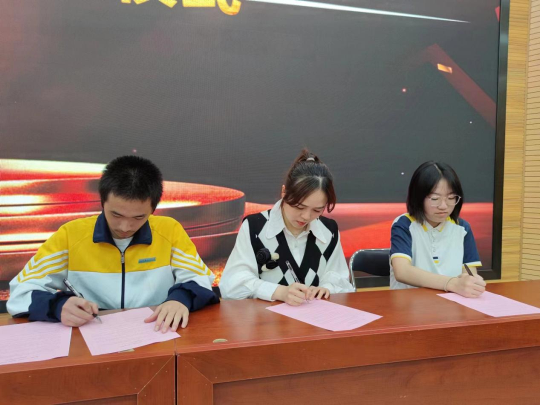 又是一年春好处,恰似相逢花盛开。为了进一步提高家长、老师和学生这个 “三角形”的稳定性,帮助学优生找差距、寻突破,真正实现家校携手,培优促尖的目标,我校于4月11日晚在思源楼阶梯教室,为初三优秀学生代表举行了以“携手同行 砥砺向前 守护成长 共赴未来”为主题的优生及家长座谈会暨导师制师生签约仪式。陈龙耀校长、林予副校长、陈磊副校长携部分中层干部以及初三年段全体科任老师参与本次座谈会,会议由校少先队大队辅导员、初三年段长倪婷老师主持。