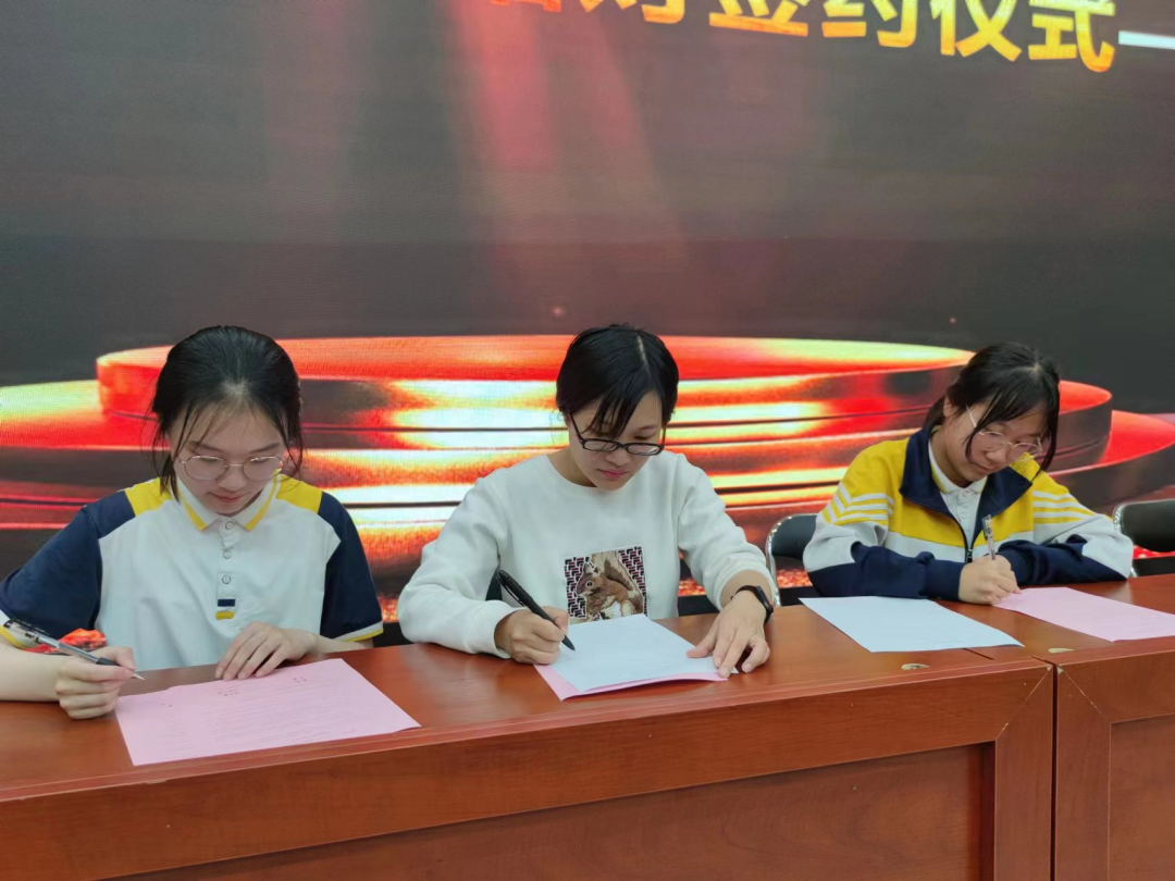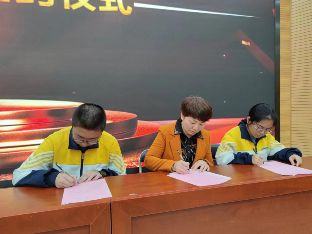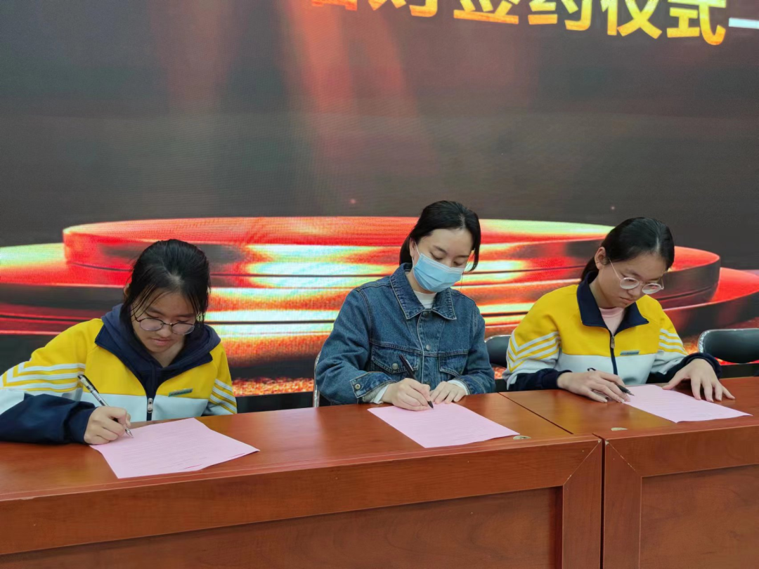 导师们与结对学生一同在签约书上郑重地签下了自己的名字,共约师生之谊。协议的签订,既是约定,也是师生们明确义务和责任的开始。导师们将引领着师22中学子,站在坚实的路面,站在宽阔的大道,站在腾飞的跑道,携手迈向美好未来。