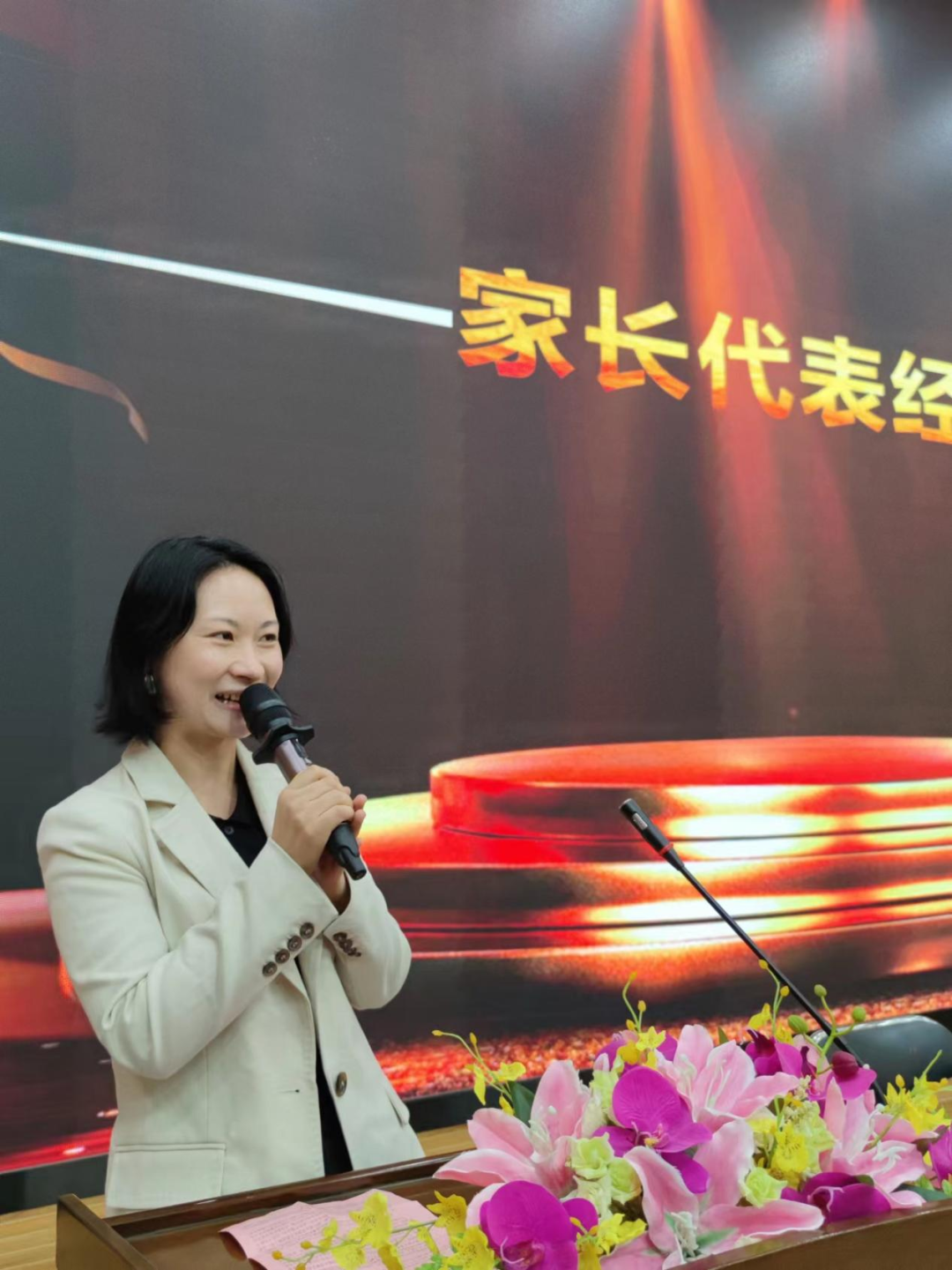 初三(3)班段弈萌妈妈作为家长代表真诚地感谢学校为孩子的成长提供了优秀的教育平台,感谢各科老师们对孩子的耐心教导和辛勤付出,并分享交流自己的教育心得,最后分享了如何为孩子们做最有力后勤保障的几点做法。家长们都表示收获满满!