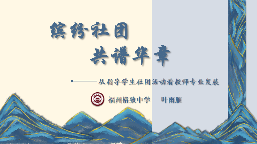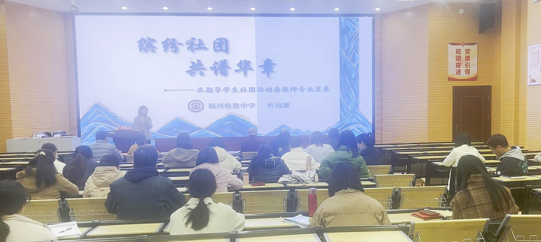 社团活动作为课堂教学的补充和延伸,目的在于培养学生综合兴趣与爱好,有助于提高素质教育质量。为帮助教师进一步通过社团来提升自身专业化发展,更好地开展社团活动,3月29日下午,我校特邀请福州格致中学叶雨雁老师为老师们带来一场精彩的讲座。本次讲座题为《缤纷社团 共谱华章——从指导学生社团活动看教师专业发展》,我校全体教师参加了本次活动。