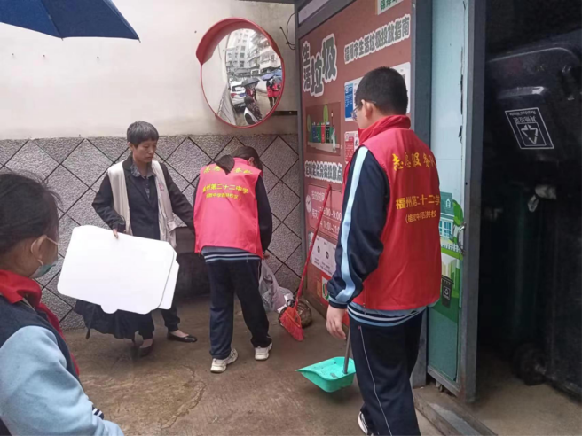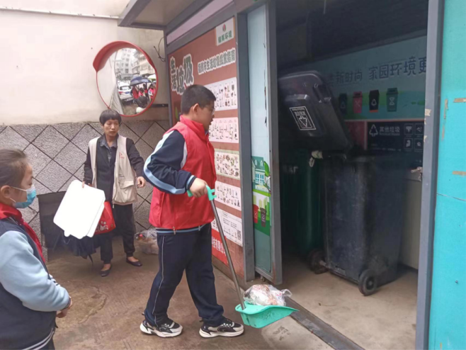 传承革命英雄不怕苦、不怕累的精神,同学们积极参与垃圾分类活动,保护我们的环境,立志为人类做贡献,在工作人员的带领下,同学们在陵园围墙后的隔壁小区垃圾房前,开展垃圾分类环保学习活动,爱护环境卫生,争当环保小卫士。