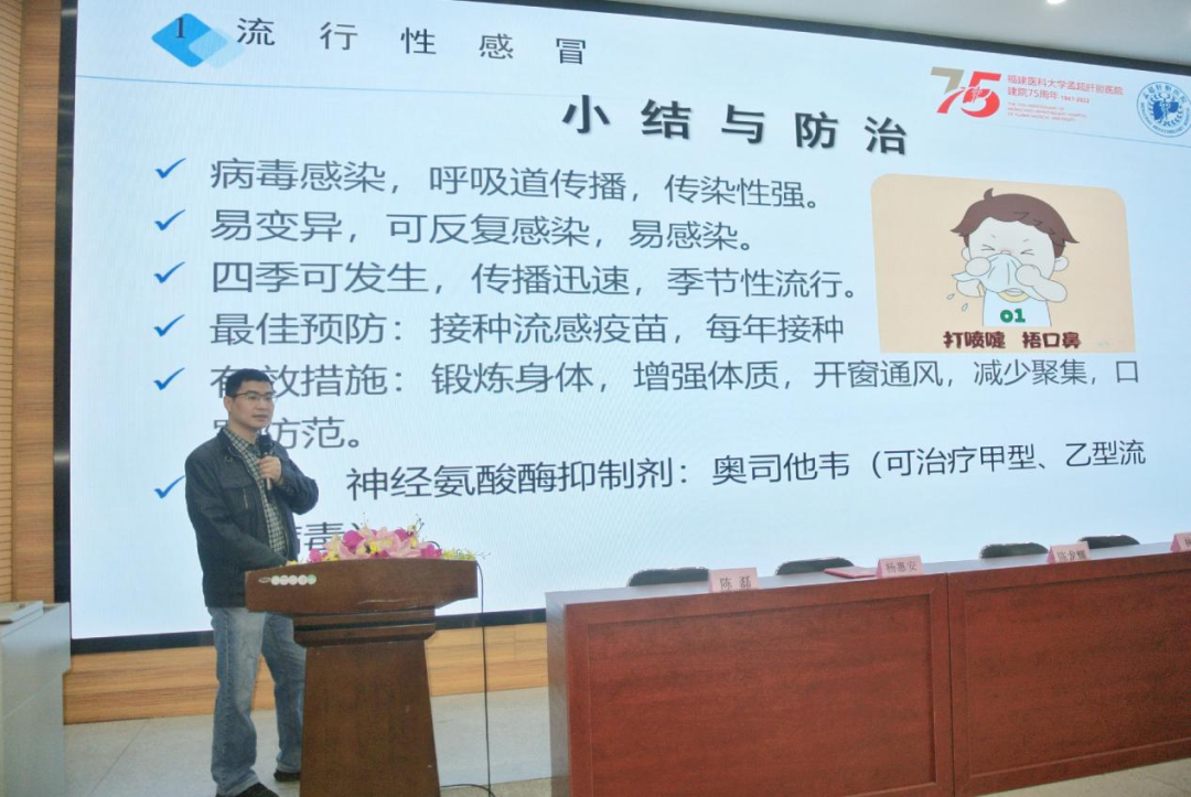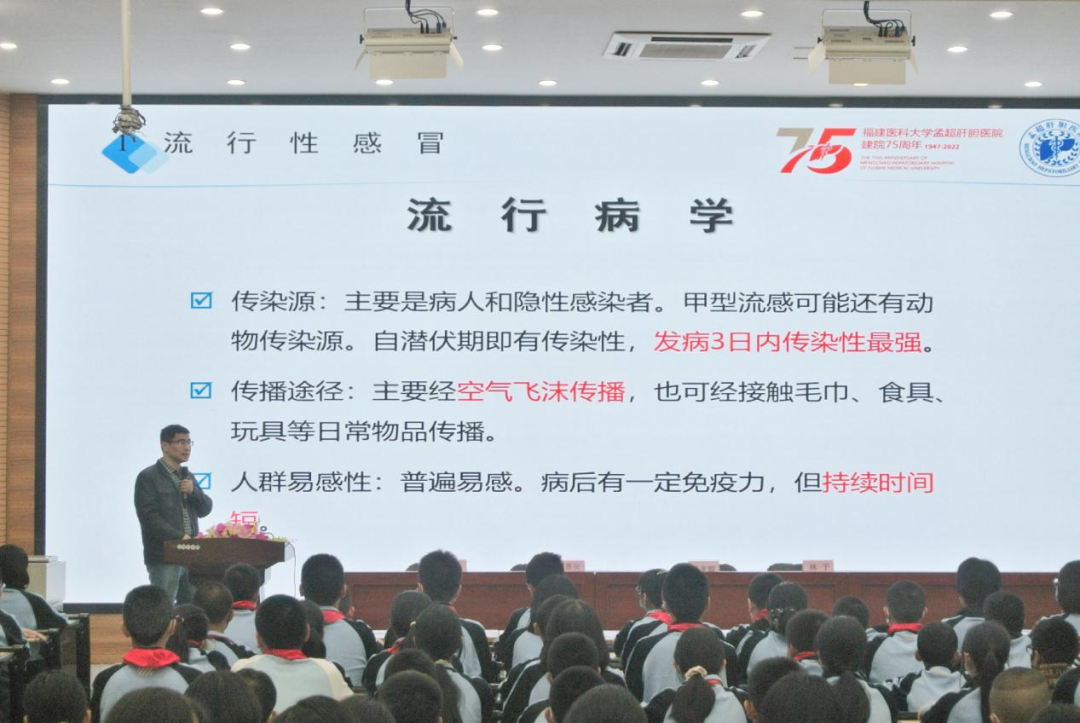 杨医生为初一同学们做了“春夏季常见传染病”专题知识讲座。讲座中,杨医生用图文并茂的素材深入浅出地讲解了各类传染病的防控常识,并从不同角度细述预防传染病感染的具体措施,提醒大家做好传染病的预防:平时要勤洗手、科学洗手,正确佩戴口罩;保持室内通风清洁,注意气候变化,随时增减衣服,避免受凉;要适当参加户外锻炼,增强体质等。