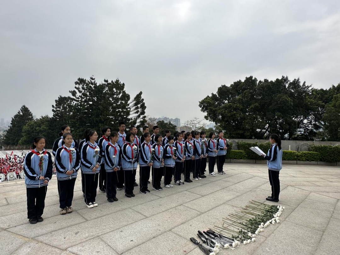 随后,全体同学依次来到烈士纪念碑前敬献鲜花,向先烈致以最深切的悼念和最崇高的敬意。