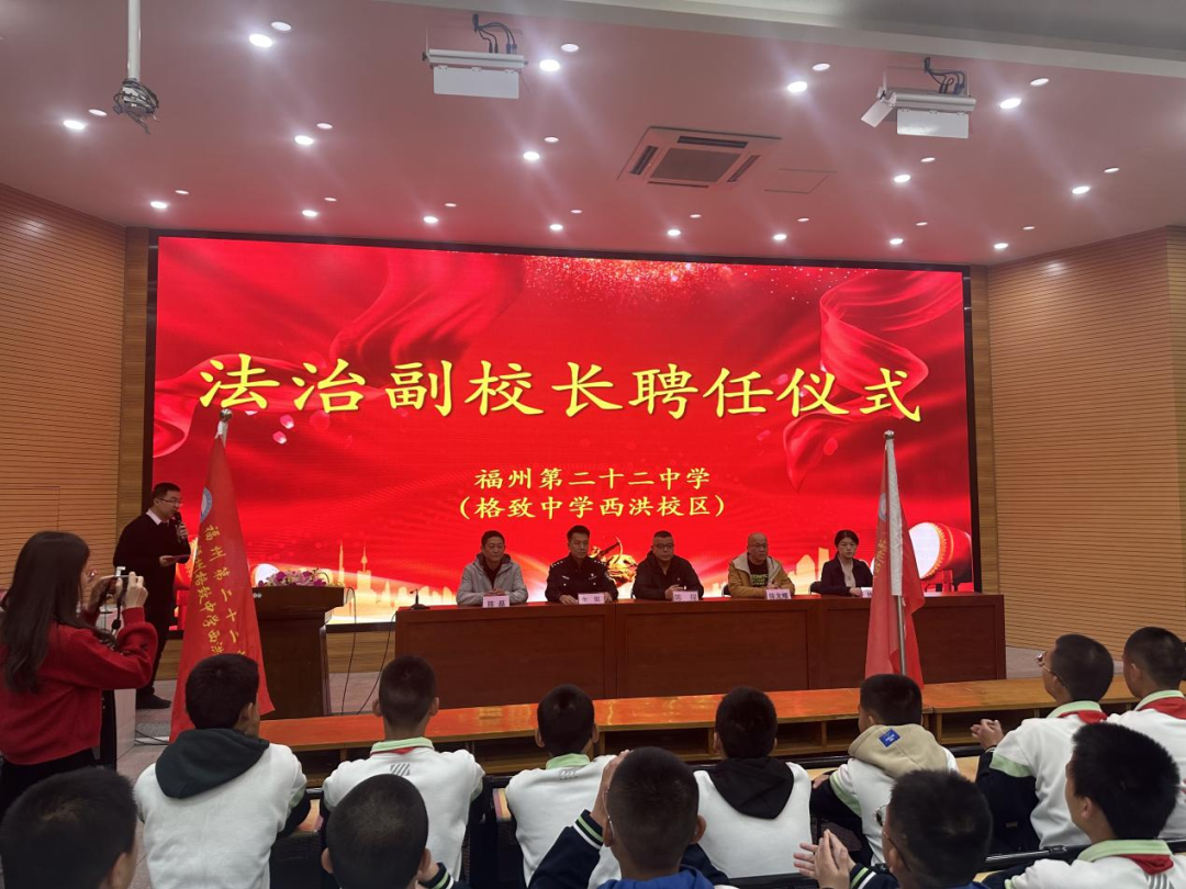 活动伊始,学校举行了庄重的法治副校长聘任仪式,陈琛书记为福州市公安局洪山派出所副所长余挺颁发法治副校长聘书,聘任余挺副所长为点点taptap官网(格致中学西洪校区)的法治副校长。