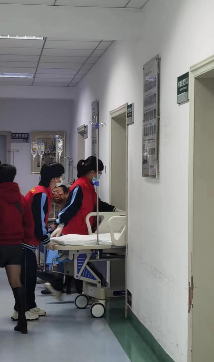 同学们还旁观了医生为患者做肠胃镜,为手术室维持秩序,平抚患者心情,在医生做手术时分散病患注意力,手术结束后扶病人下床等等。
