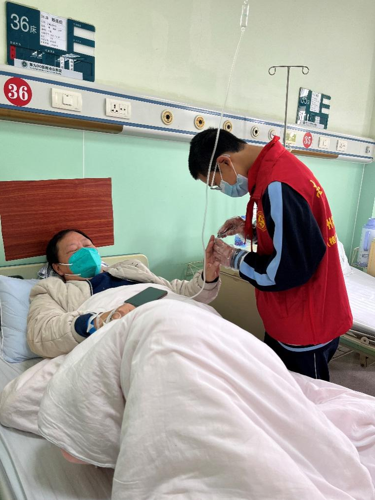 住院部的同学们主要任务是照顾病人,他们为不能自理的老人剪指甲,长长的指甲在他们的修剪下干净了许多。