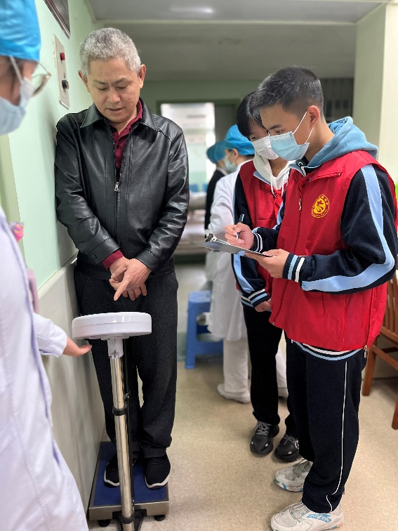 病房比较枯燥,老人们大多不会用手机,同学们便和老人做起了游戏,让原本无聊乏味的病房充满了欢声笑语。同学们身子不大,力气却不容小觑,他们帮助数位老人,搀扶她们量体重,无需帮忙,靠着小身躯,大力量完成了服务。