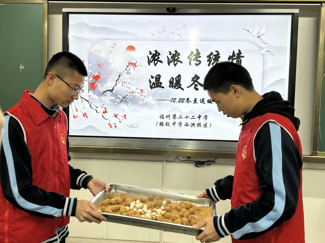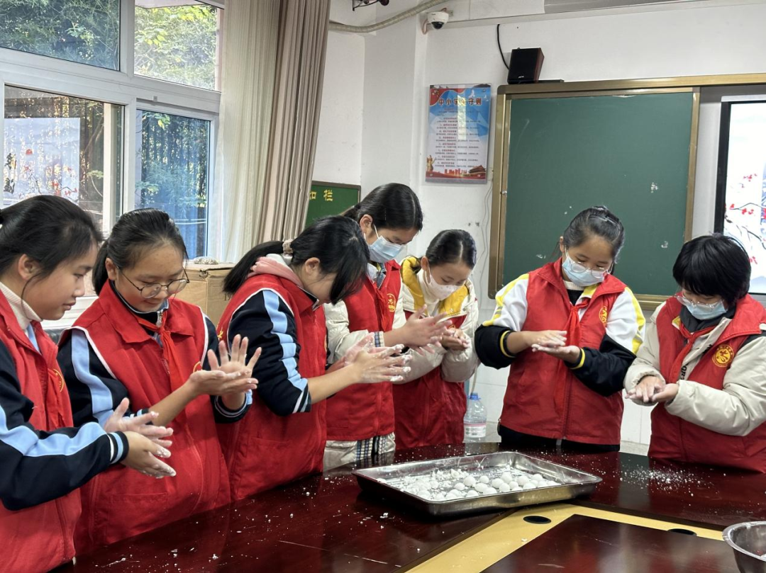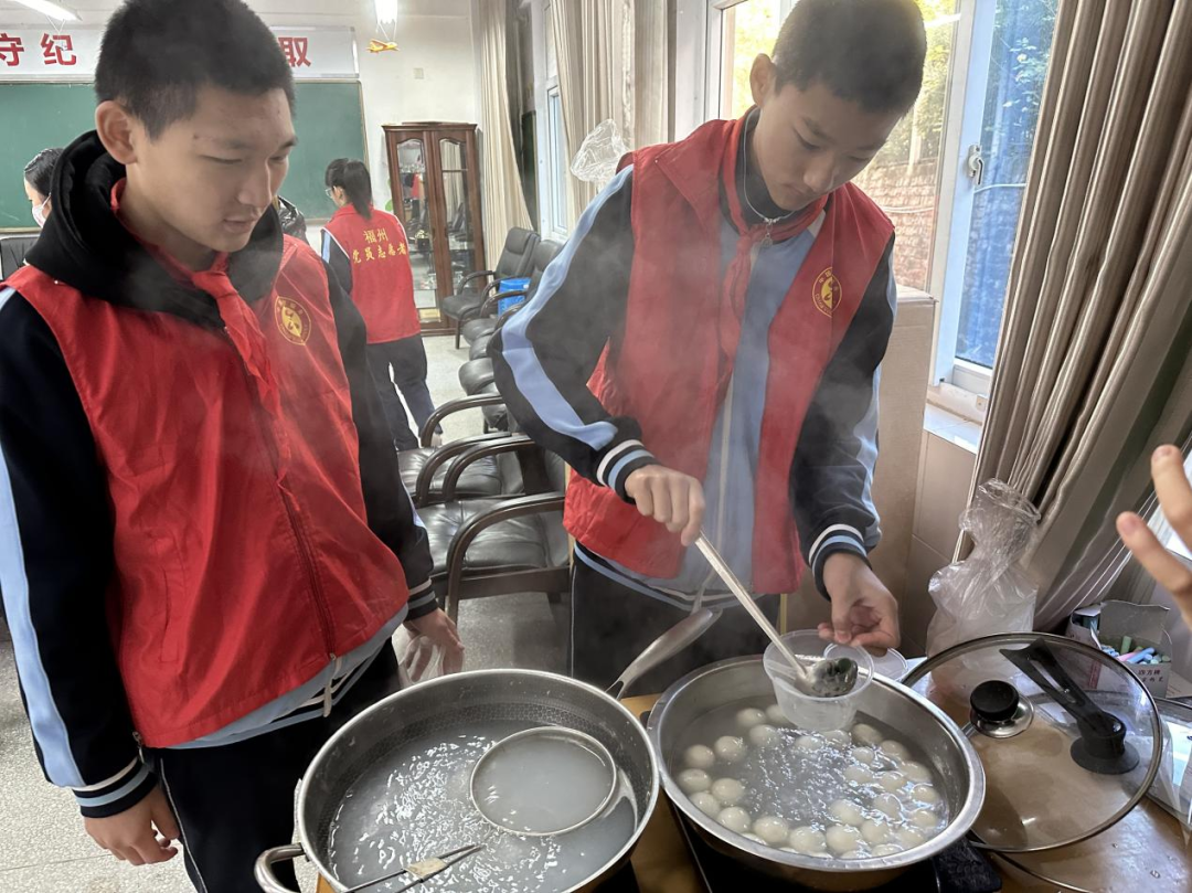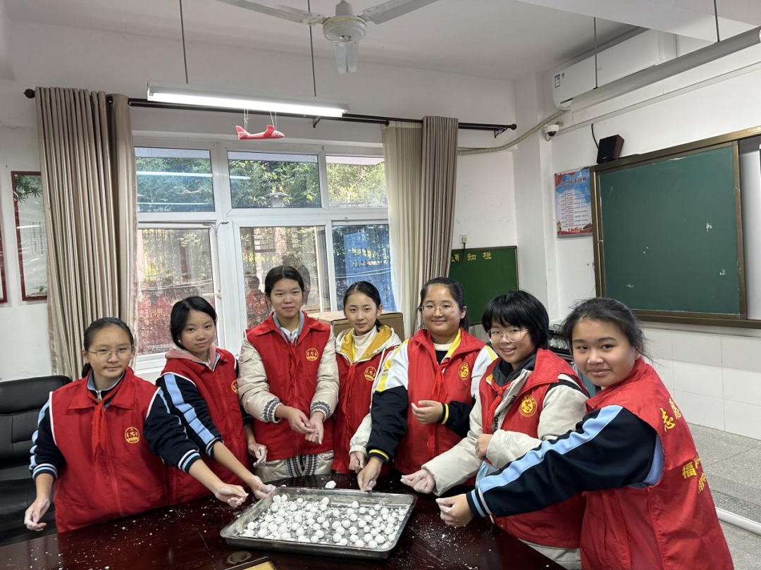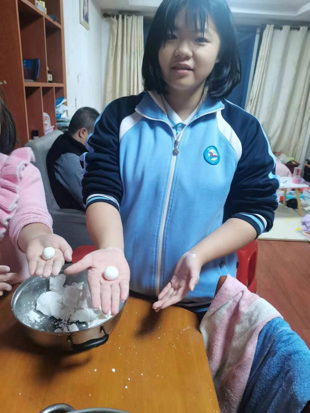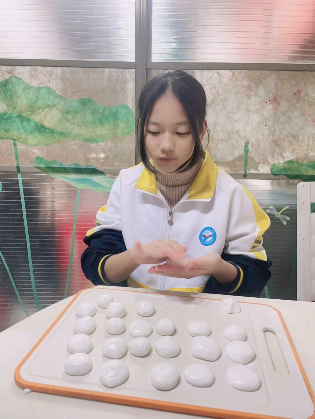冬至大过年,人间小团圆。吃汤圆是冬至的传统习俗之一,“圆”意味着“团圆”“圆满”。冬至当天,学生与家人围坐在桌前,一家人其乐融融制作汤圆,共享团圆时光,共度美好冬至。