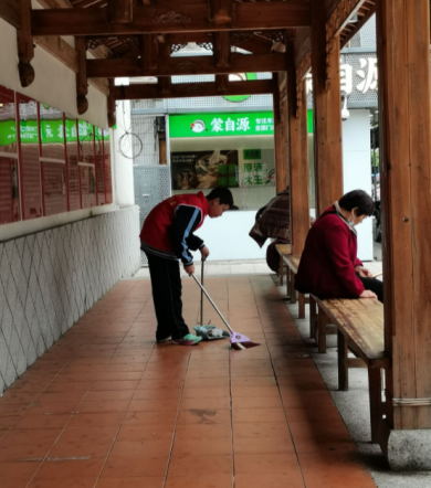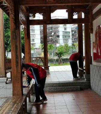 一来到这里,志愿者们就有序的开展清扫活动。有的同学开始打扫垃圾,包括纸屑、口罩、烟蒂等;有的同学开始擦拭墙壁和座椅。