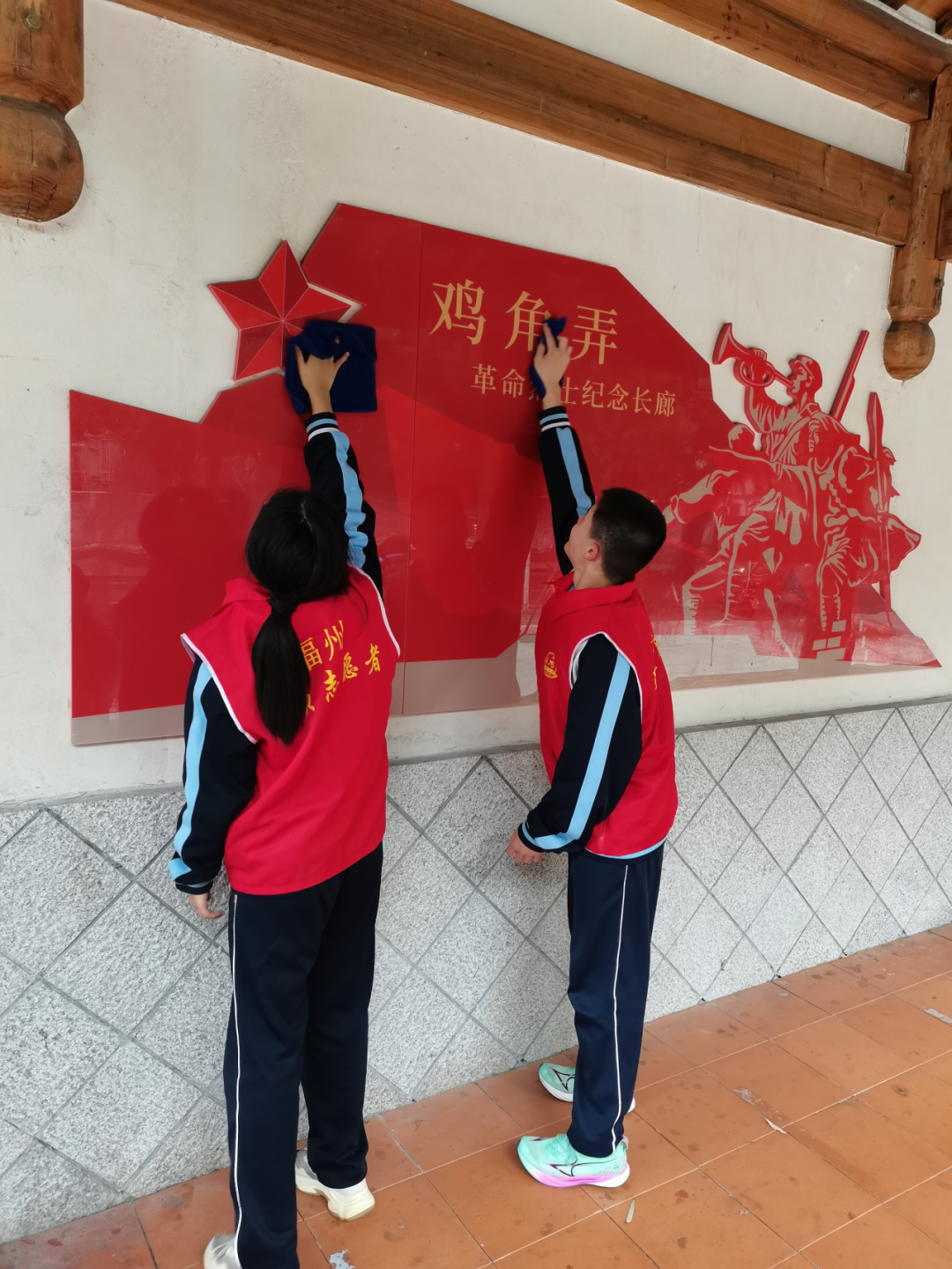 保护环境,人人有责,为了创设优美的家园环境,大力弘扬雷锋精神和志愿精神,初二4班的志愿者们来到鸡角弄公园清洁卫生,给路过的市民朋友们起了很好的榜样作用,提高环境意识,保护美好家园。