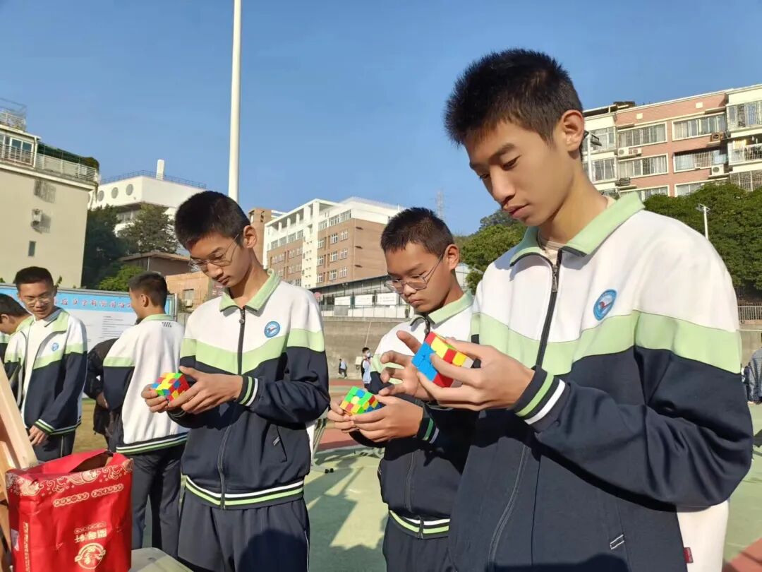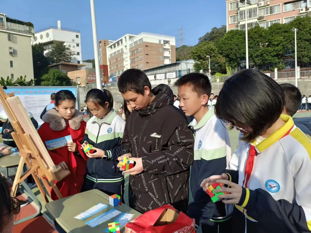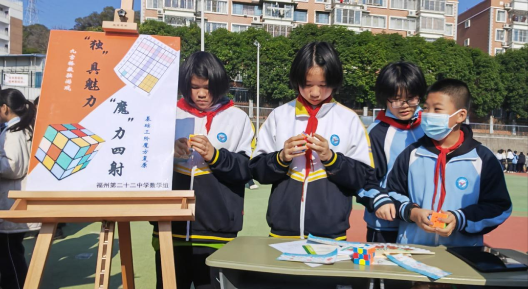 著名数学家华罗庚说过:“宇宙之大,粒子之微,火箭之速,化工之巧,地球之变,生物之谜,日用之繁,无处不用数学。”数学是一个色彩缤纷的万花筒,美丽而奇妙。为了培养学生的数感和思维能力,让学生在玩中学、玩中思,体验数学的乐趣,数学学科开展了“魔力四射,独具魅力”的学科活动。这边,随着老师的一声“开始”,“咔咔咔”转动色块的声音响起,同学们个个屏气凝神专注于指尖的炫彩,进行激烈的角逐。另一边,学生沉浸在数独游戏创想中,他们调动思维,开启紧张的头脑风暴,用逻辑和推理能力一次次尝试探索直到获取正确答案。他们争分夺秒,一边体验着挑战的刺激,一边享受着思考的乐趣,感受着数学的魅力。
