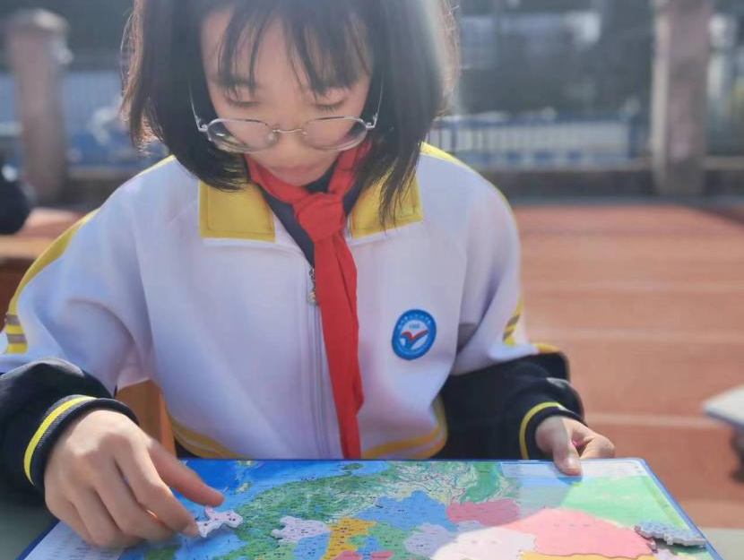 地图是地理的第二语言,为了加强学生捍卫祖国领土领海完整意识,培养爱国主义情操,牢记我国34个省区名称、轮廓和位置,地理学科举行了爱“拼”才会赢中国政区拼图比赛。“开始”的口令一响起,赛场上便弥漫着紧张而兴奋的气氛。选手们用敏捷的双手把一块块小小的拼图变成了一幅幅完整的中国地图,展示了选手们对中国行政区划的熟悉。活动激发了同学们的学习热情,增强了学生的国家版图意识,提高了学生独立实践、动手操作的能力,相信这颗热爱祖国每一寸土地的种子已经扎根于学生们的心灵。