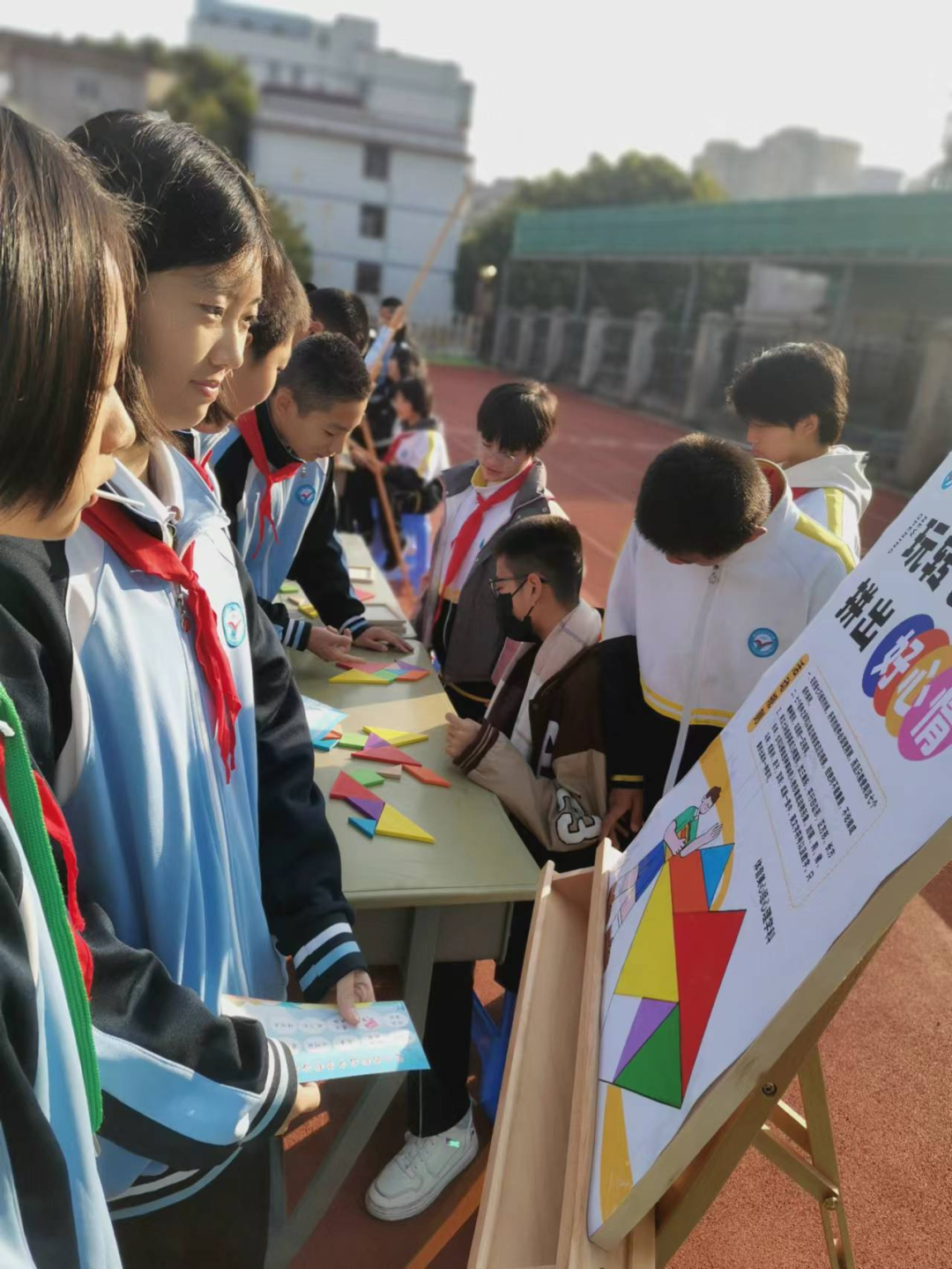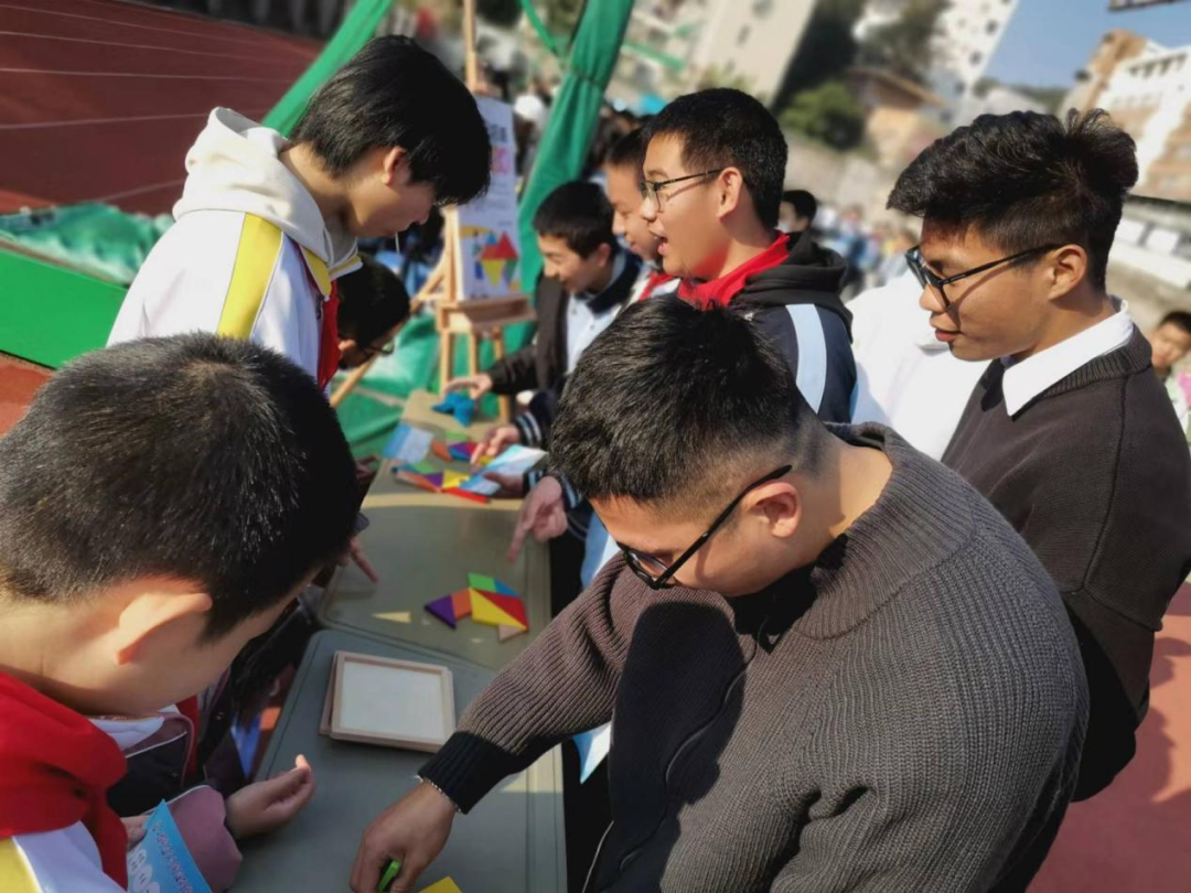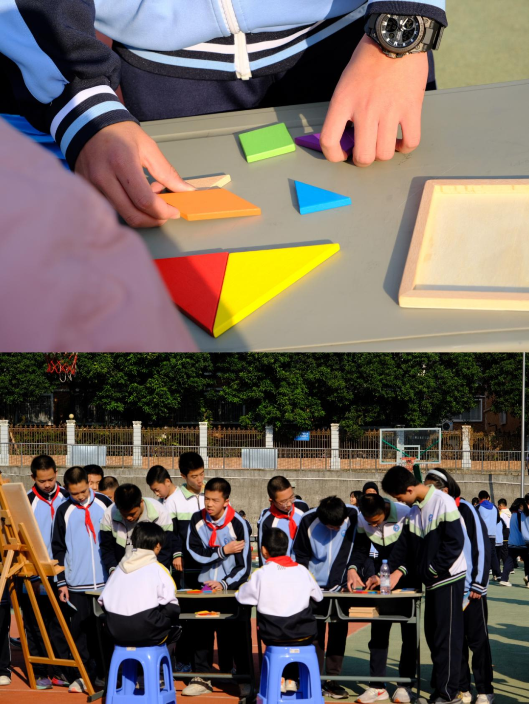为提高学生心理调节能力,促进同学间交流,心理学科开展了“玩转七巧板、拼出好心情”心理健康学科活动。活动过程中,各位同学为完成拼图任务动脑筋想办法。有的同学拼搭出几何图形,有的同学拼出有趣的人物形象、动物形象,有的同学拼出桥、房子、宝塔,也有同学拼出文字符号、数字等。每当完成一个图案,场上就响起同学们快乐的欢呼声,同学们也因此备受鼓励,大家积极地为完成任务而努力。此次活动的顺利开展,同学们体会到成功和挑战的乐趣的同时也提高了自身的心理韧性。