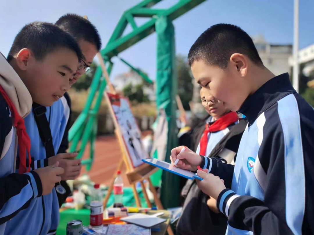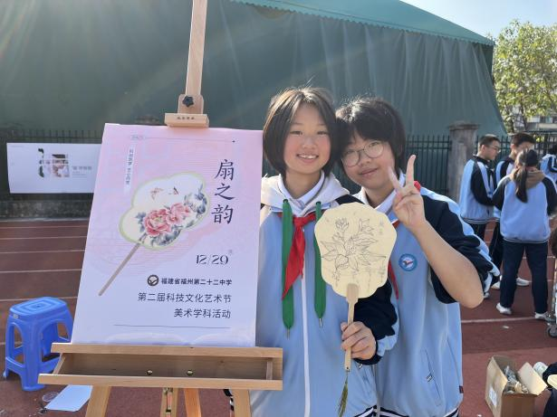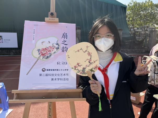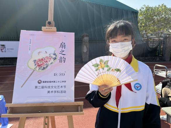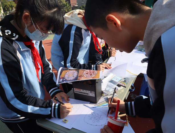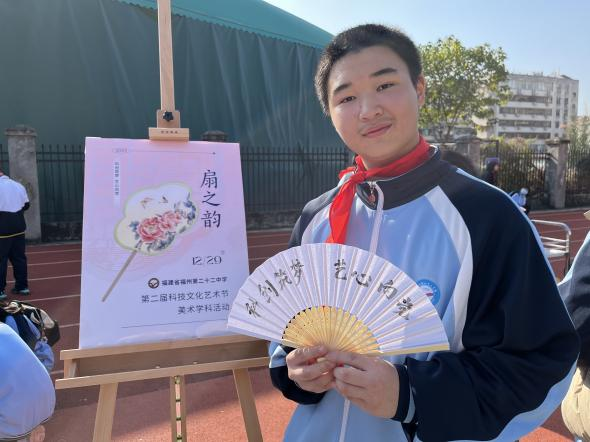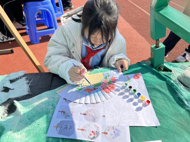 扇,执于手中;善,源于内心。扇,在中国是传承,更是文化。扇面虽小,却可绘出中国传统文化中的大美。一幅幅扇面、一支支画笔,同学们发挥创造力,开启妙趣横生的扇面创作之旅。活动现场,同学们认真勾勒、专心描画,将自己的想法化作灵动的图案,让原本空无一物的扇面变得生动起来。同学们手持扇面爱不释手,看着自己创作的扇子,满满的成就感溢于言表。