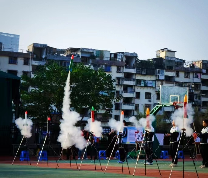 本届开幕式师生最期待的环节,当属火箭发射和无人机编队表演。福建省车云名师工作室带来的火箭发射和无人机编队飞行表演,精彩的表演令同学们叹为观止。