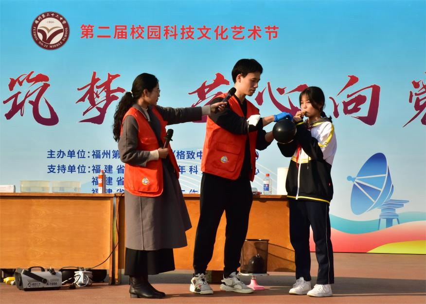 由福建省科技馆科技辅导员团队带来的“惊奇实验室”科学表演在我校科艺节上精彩亮相。