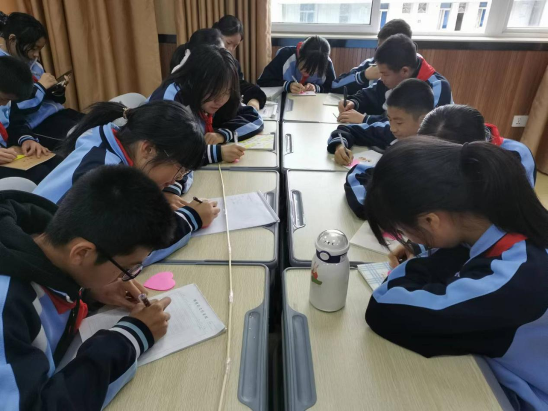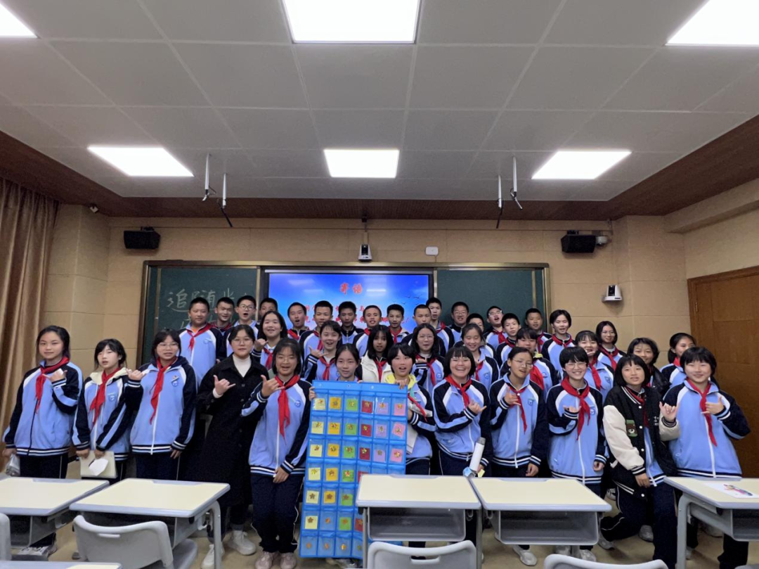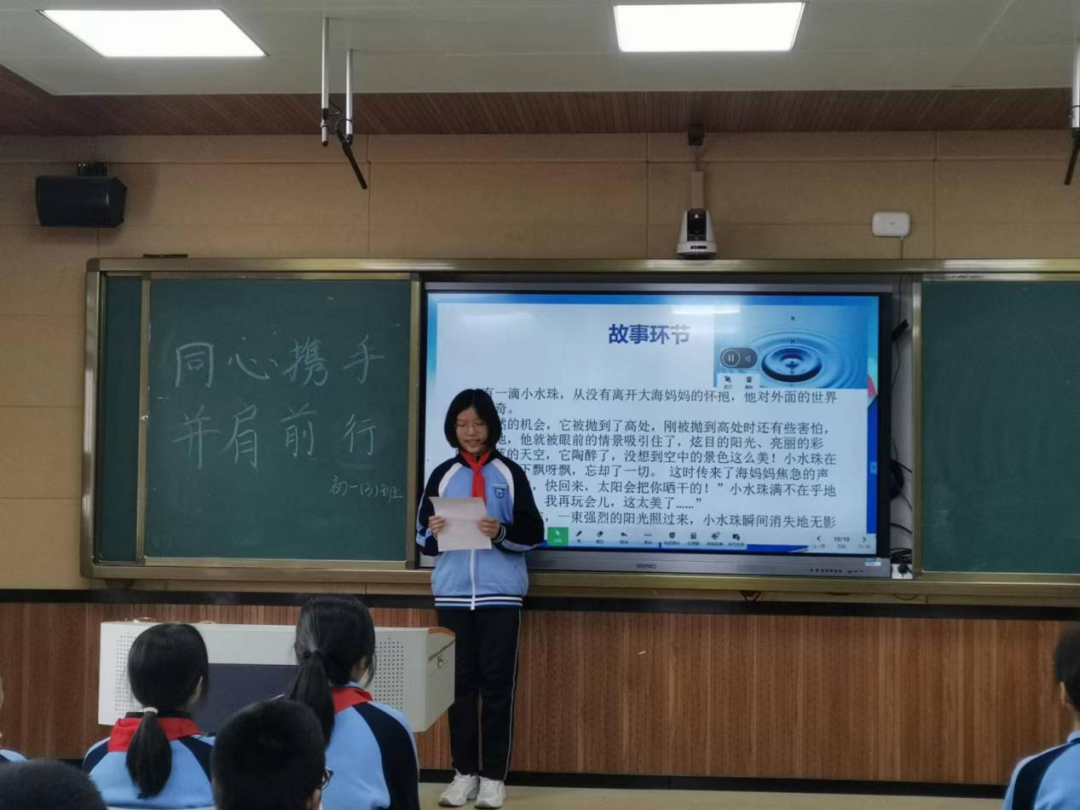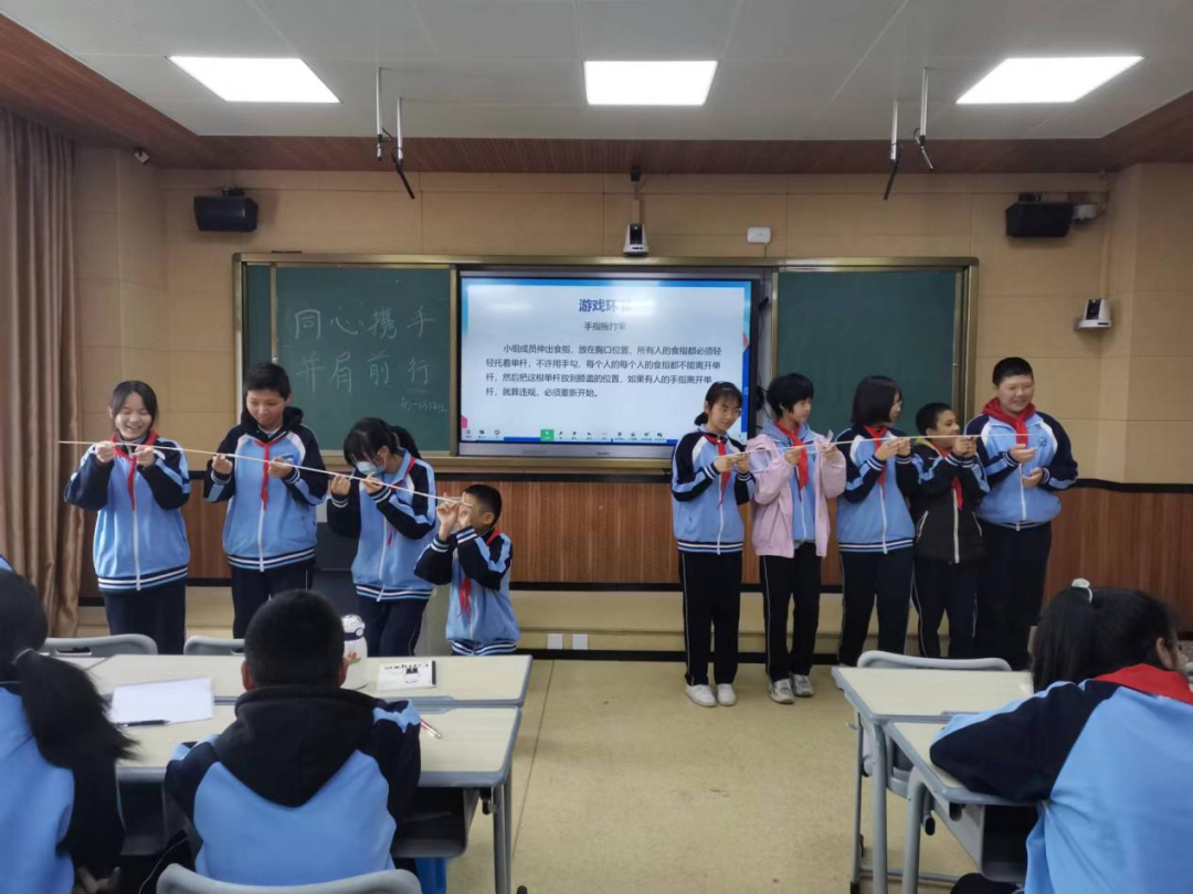 初一(3)班班主任念雨薇老师以“同心携手,并肩向前”为主题上了一堂生动精彩的德育公开课。雨薇老师的班会课主题鲜明,紧扣“团结”,通过“班级运动会报名”“班上值日情况”两个情景表演、手指拖竹竿游戏、小水珠的故事、观看社会实践视频、齐唱《团结就是力量》等等来增强学生的团结意识,促进学生身心各方面发展,增强班级的凝聚力。
