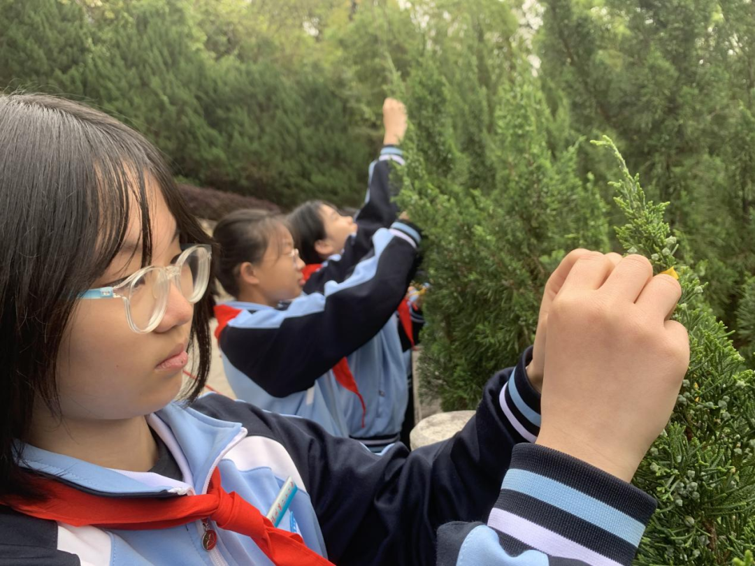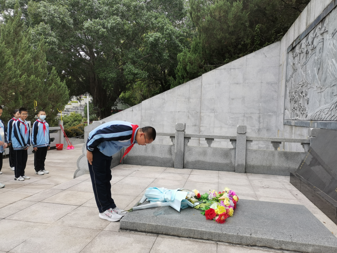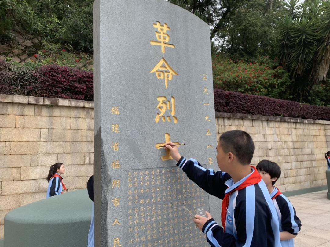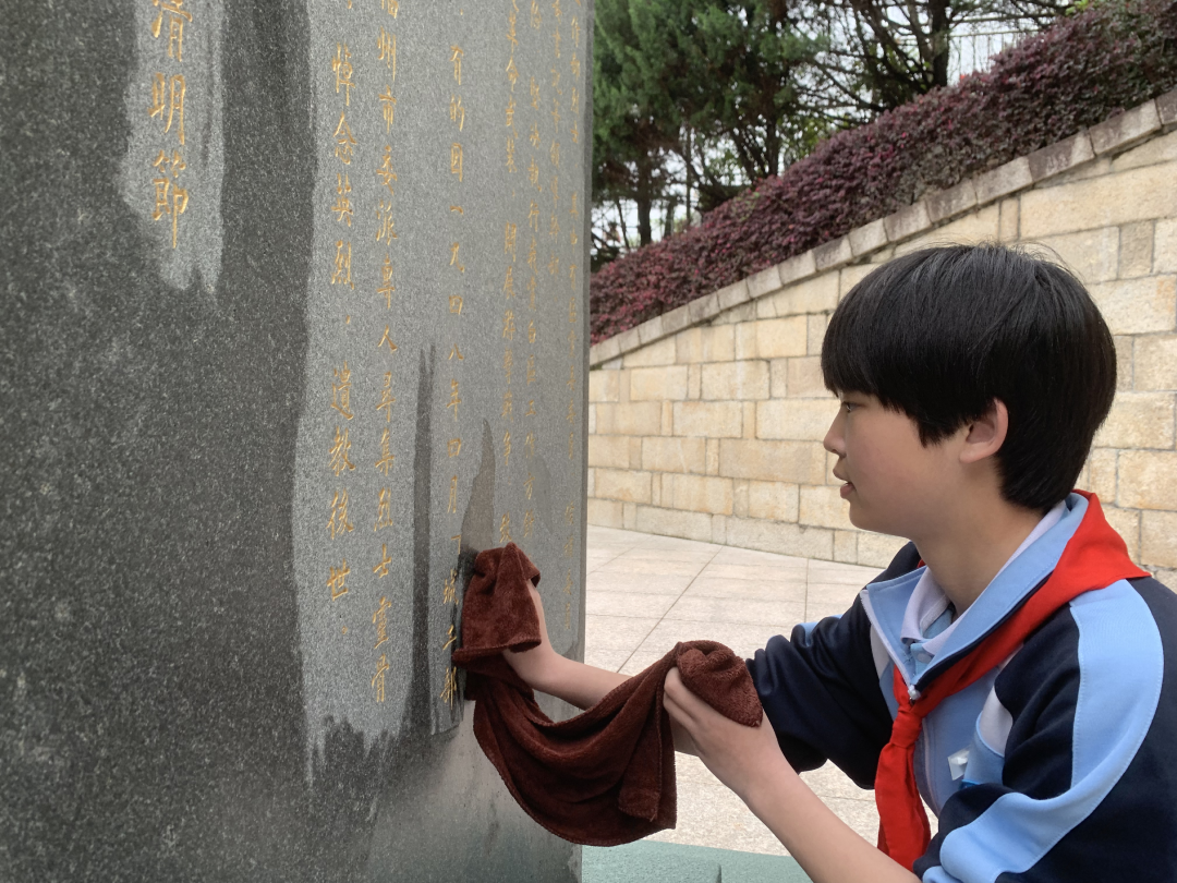 随后,学生依次参加了“擦拭一遍墓碑、敬献一束鲜花、进行一次描金描红、重温入团(入队)誓词、写一张寄语卡片、讲述先烈故事”等活动。