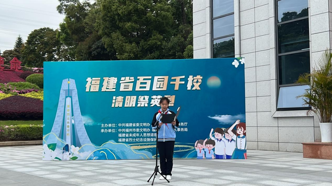 学生代表张曦慧发言,提出寄托哀思、缅怀先烈的倡议:祭奠革命先烈、传承红色基因、践行文明祭扫等,成为新时代的伟大实践在召唤新时代的有志少年。