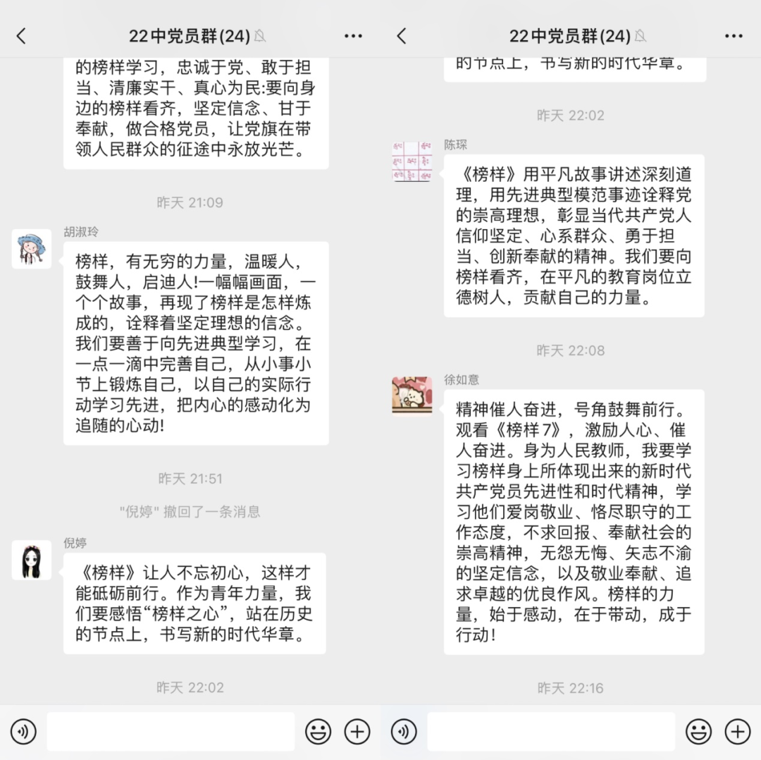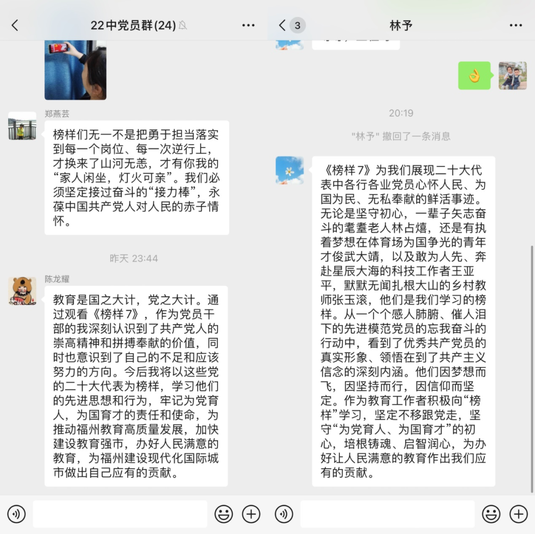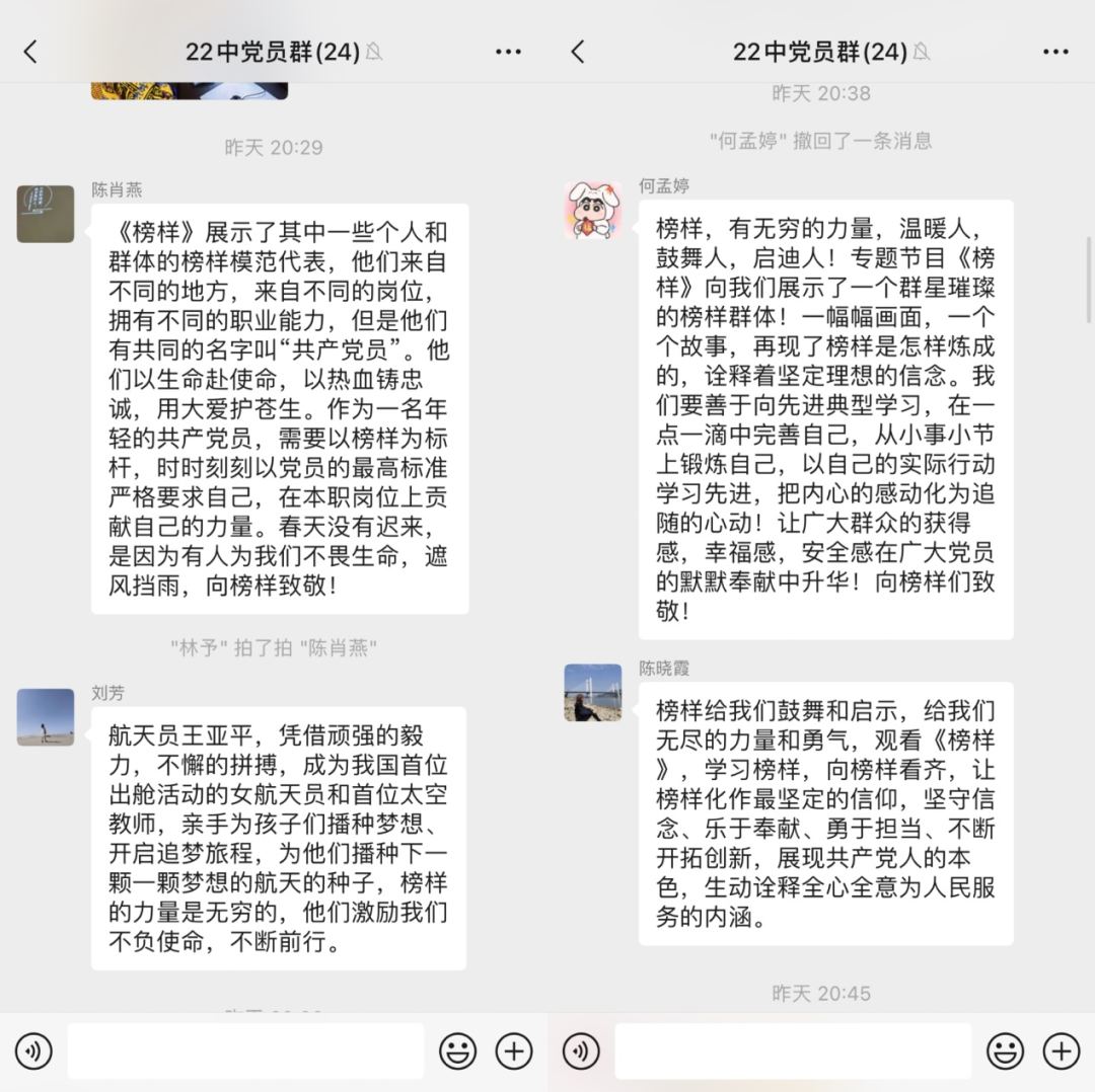 为深入学习贯彻习近平新时代中国特色社会主义思想和党的二十大精神,充分发挥先进典型示范引领作用,大力宣传党的二十大代表的先进事迹,教育引导广大党员干部学习榜样、争当先进,担当作为、建功立业,中央组织部、中央广播电视总台联合制作了《榜样7》专题节目。节目邀请王亚平、王传喜、艾爱国、张玉滚、武大靖、林占熺、孟昆玉、路生梅等8位党的二十大代表参加录制,通过典型事迹展示、现场访谈、重温入党誓词等形式,生动展现中国共产党人坚定信念、践行宗旨、拼搏奉献、廉洁奉公的高尚品质和精神风范,彰显基层党组织战斗堡垒作用和党员先锋模范作用,是开展党员教育培训的生动教材。3月25日晚八点,点点taptap官网党总支组织全体党员同志居家观看《榜样7》,并发表了观后感。