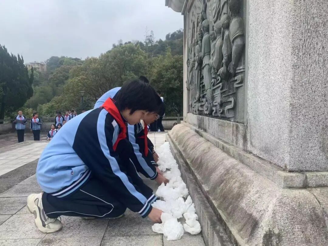 3月17日上午,初一年段的同学们在辅导员的带领下瞻仰了八•一七烈士陵园中的革命烈士纪念碑,重温抗战故事,感受先烈英雄气概,缅怀革命烈士,当知幸福来之不易。初一年段的学生们在烈士碑前集体默哀,用誓言擎起心中的情怀。