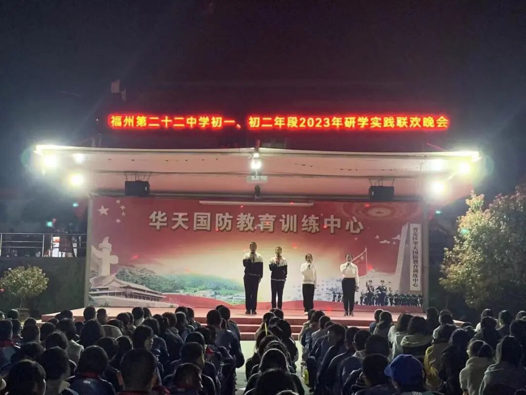 在实践活动临近尾声时,同学们的联欢晚会又拉开了帷幕。我们的学生藏龙卧虎,为现场的观众们带来了一场视听盛宴。劲爆的音乐、灵动的舞步、动人的歌声,无一不展示着22学子们最灿烂的青春风采。舞台下观众掌声雷动,欢呼雀跃。老师们也走上舞台,献唱一曲《阳光总在风雨后》,全体观众欢欣起舞,将整场晚会推向高潮。