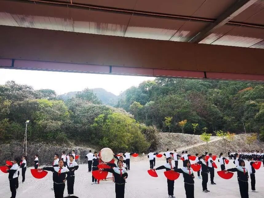 首先由初二年段全体学生表演《国家》,“家是最小国,国是千万家”,同学们手语动作整齐划一,他们正以“手语操”的方式,传达对祖国的感恩与爱。阳光下,祖国的青少年们踔厉奋发的精神正悄然生长,以无畏之青春,捍卫盛世之中华。