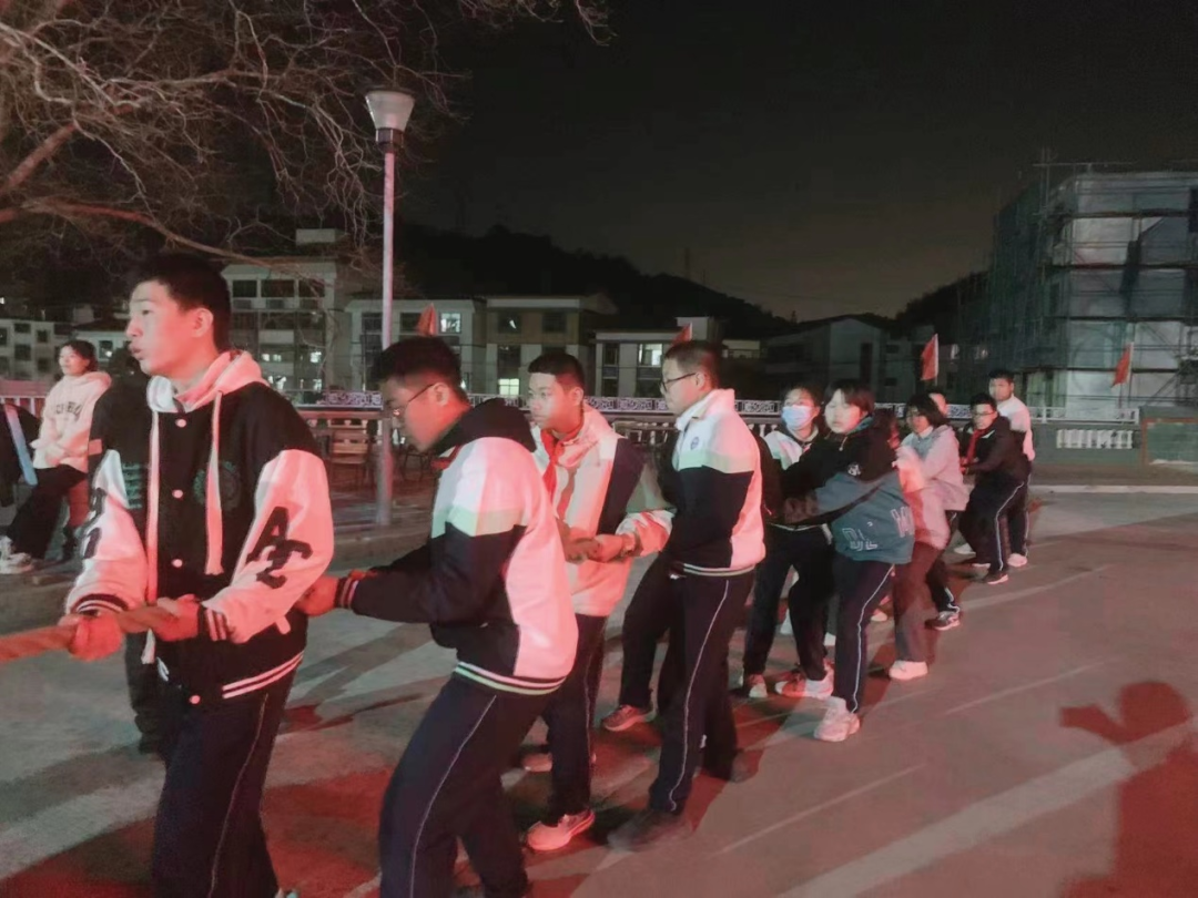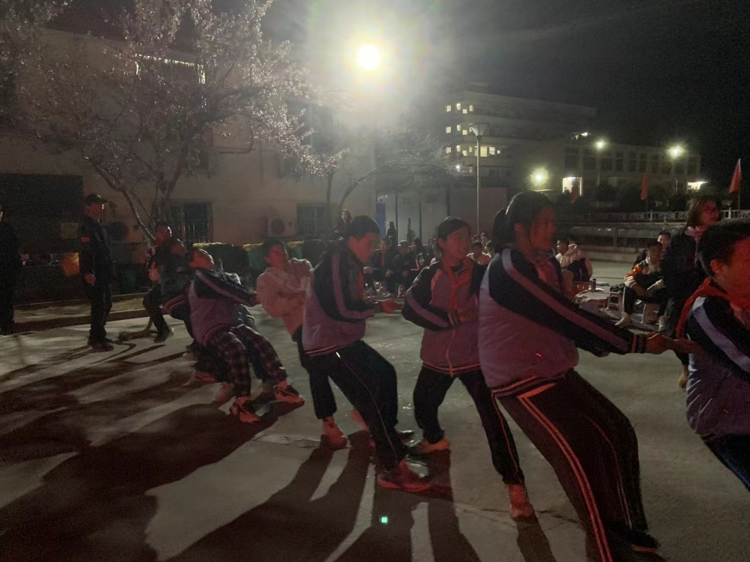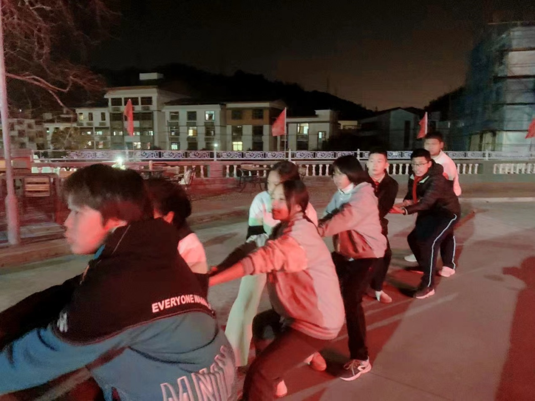 结束第二天白天的实践活动之后,孩子们在晚间开展了拔河比赛。夜幕中,振奋人心的拔河比赛,每一位比赛选手都全力以赴,绝不放弃,赛场上的加油助威声更是此起彼伏,增强了各班级的团结力和凝聚力。